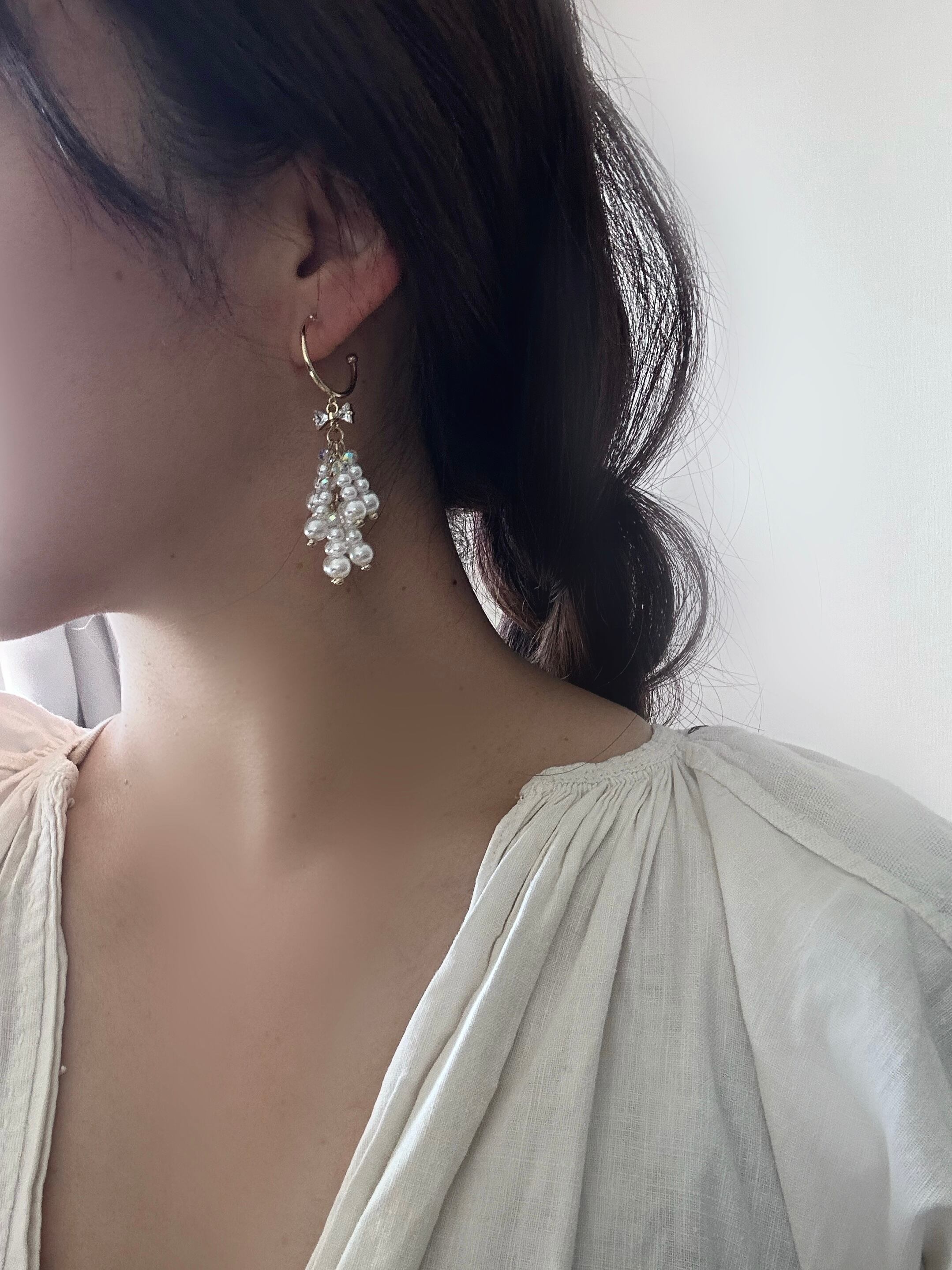パールをたっぷり使ったちょっと贅沢なイヤリング。
