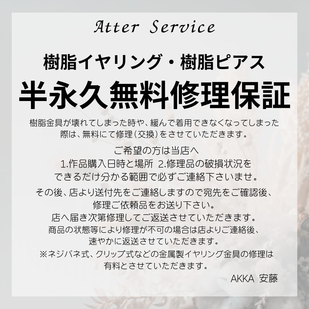 イヤリング金具は樹脂なので金属アレルギーの方にもお使いいただけます。