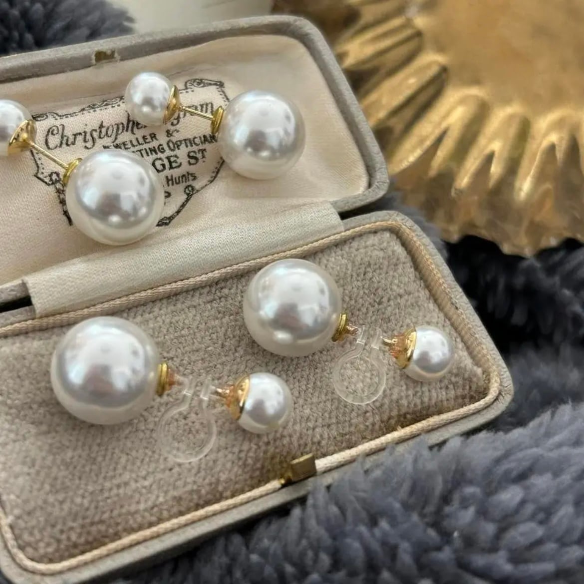 限定◆Pearl double earring パール ダブル 樹脂イヤリング 普段使い デイリー使い 華やか パーティー イヤリング アレルギー 可愛い 上品 お洒落 ピアス シンプル 金アレ