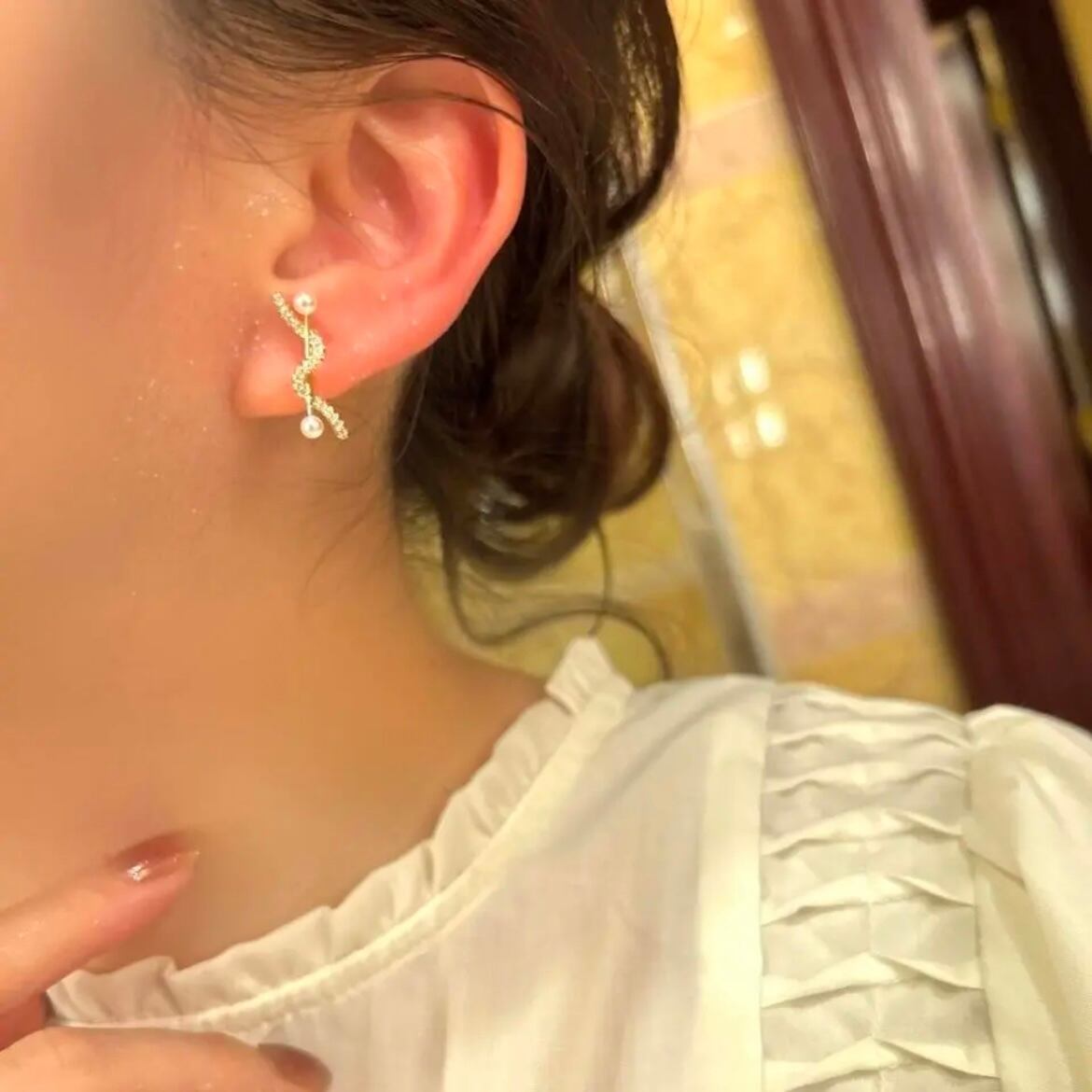 限定◆twist bijou Pearl earring パール ツイスト ビジュー イヤリング デイリー使い 華やか 樹脂 ノンホール パーティー アレルギー 可愛い 上品 お洒落 ピアス 金アレ