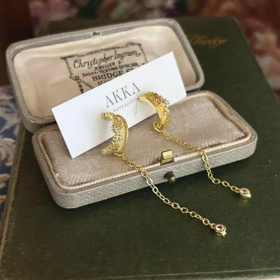 ヴィンテージなデザインで、普段のファッションをより重厚感ある雰囲気に仕上げてくれます。上品・クラシカルなデザインで様々な年代の方にもお使いいただけます。とても使いやすいフープ型でデイリー使いにもオススメです✨