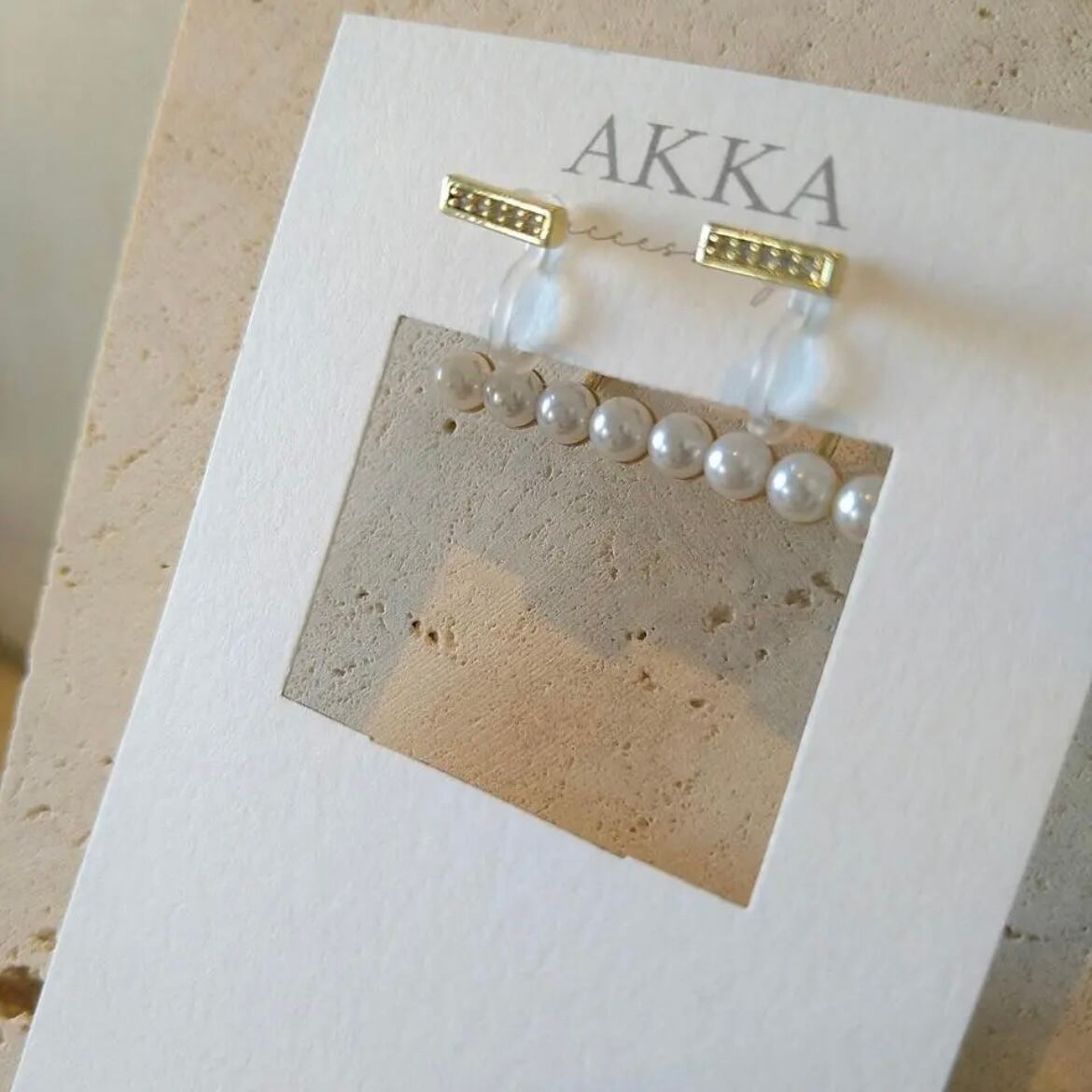 Bijou bar & pearl earrings ビジューバーとパールの 樹脂イヤリング 樹脂ピアス 大人 可愛い アレルギー 痛くない フープイヤリング フープピアス AKKA