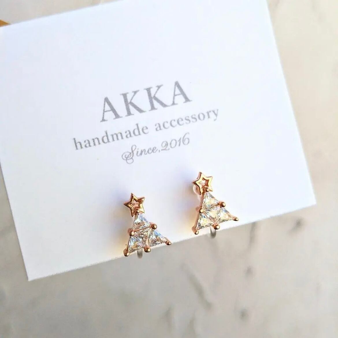 Xmas tree bijouearrings クリスマス ツリー 一粒 イヤリング【ピンクゴールド】 冬 リース ノエル 樹脂ピアス ノンホール 可愛い ピアス 金属アレルギー AKKA