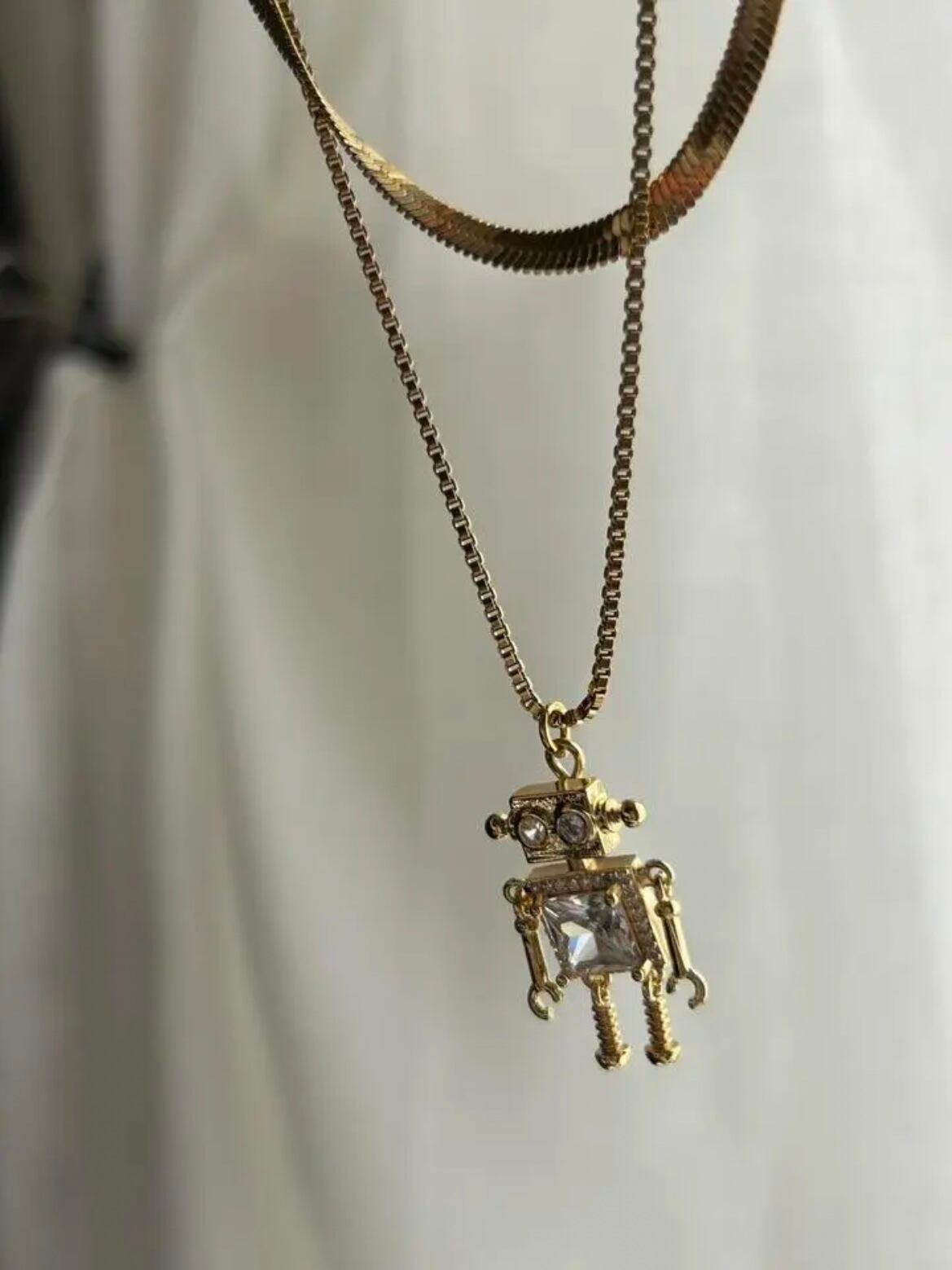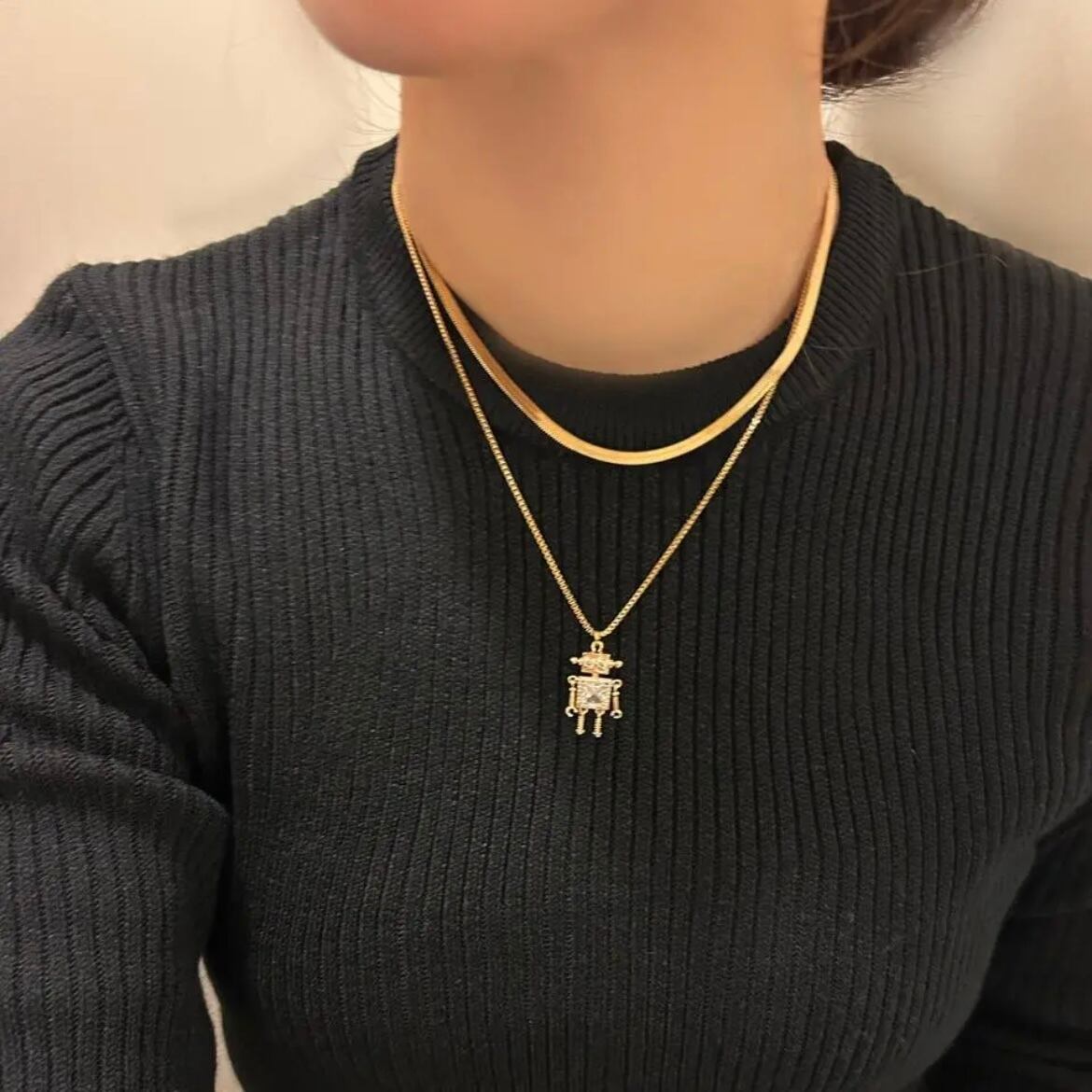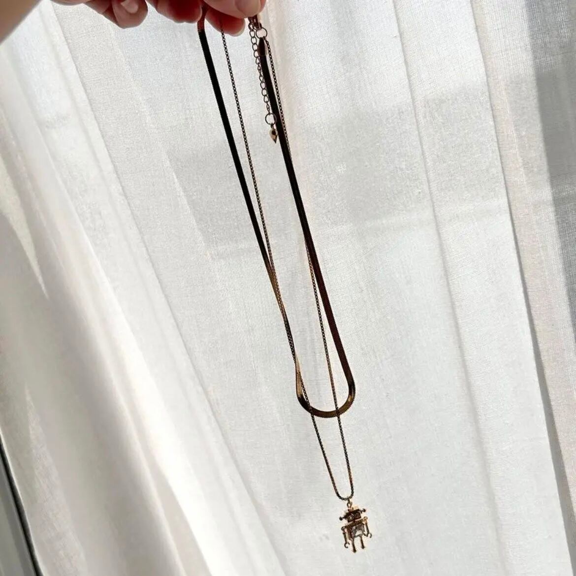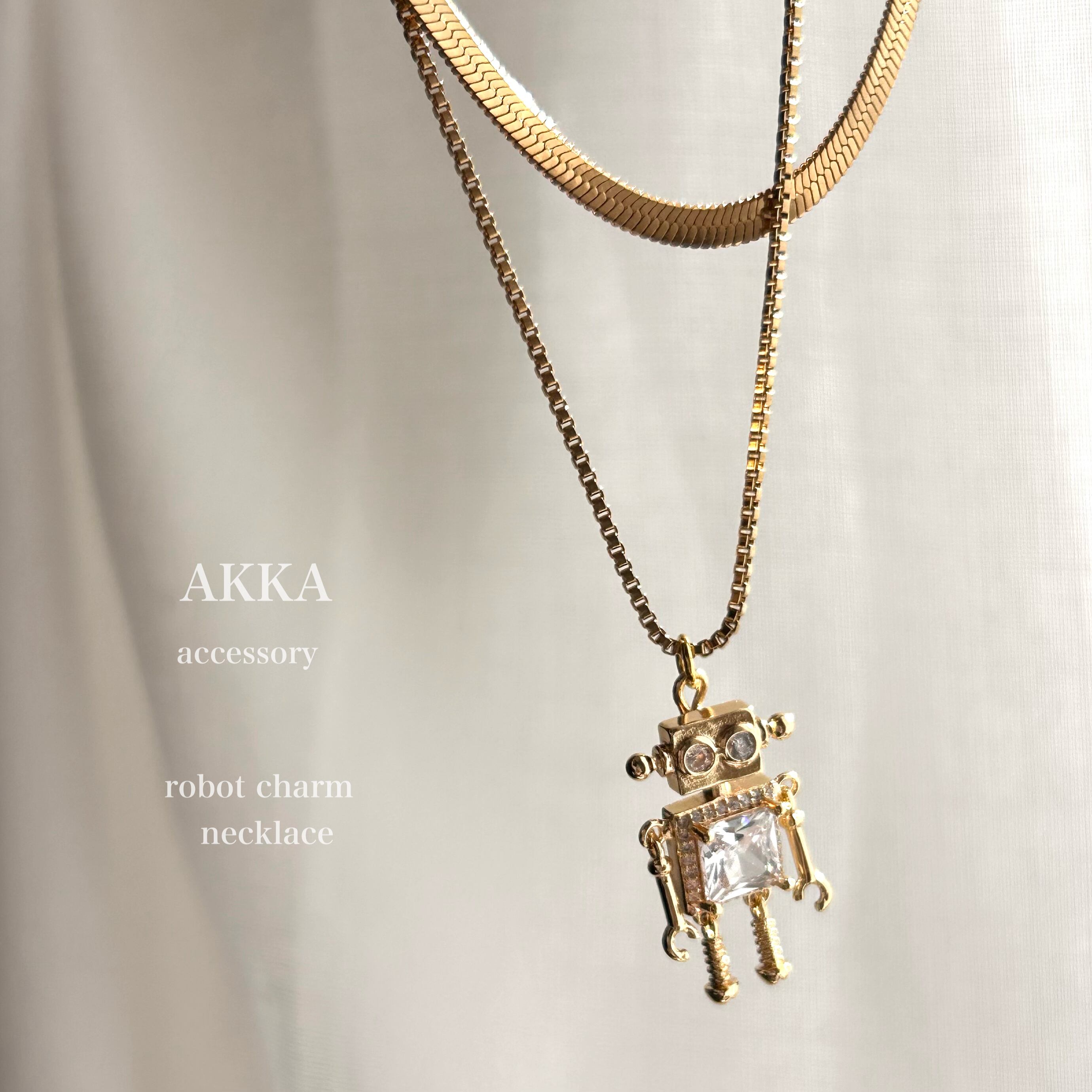 Robot charm necklace ダブルチェーン ロボット チャーム ネックレス AKKA 金属アレルギー ヴィンテージ風 金属アレルギー ミニ 小さめ シンプル デイリー 普段使い AKKA