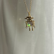 キラキラに散りばめられたジルコニア。ロボットのお腹あたりには1粒の大きなジルコニアストーンがセッティングしてあるため、光に当たるだけでも眩い虹色の光を放ち神秘的な世界を映し出します。普段のファッションのお供におすすめです。手足はブラブラと自由自在に動きます。