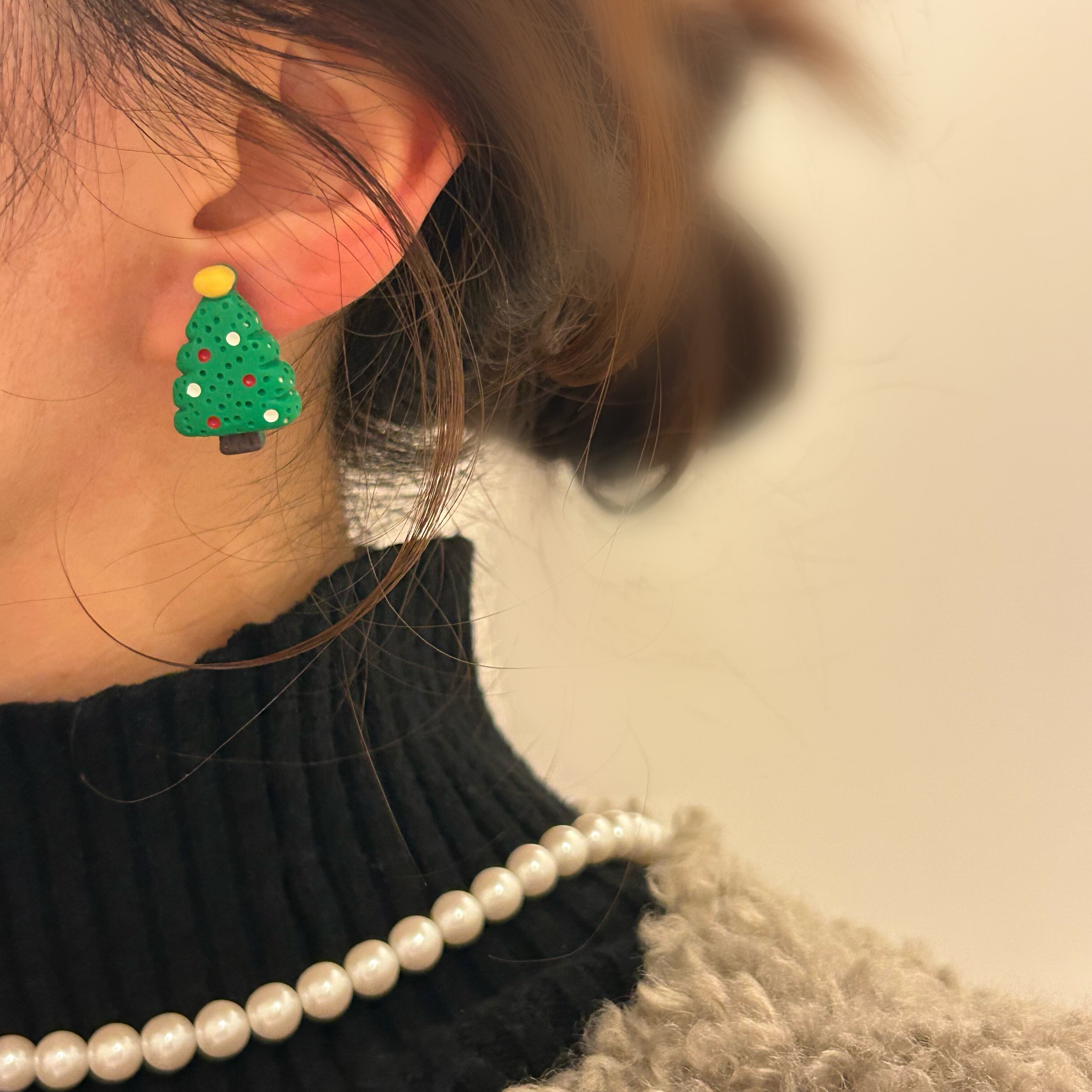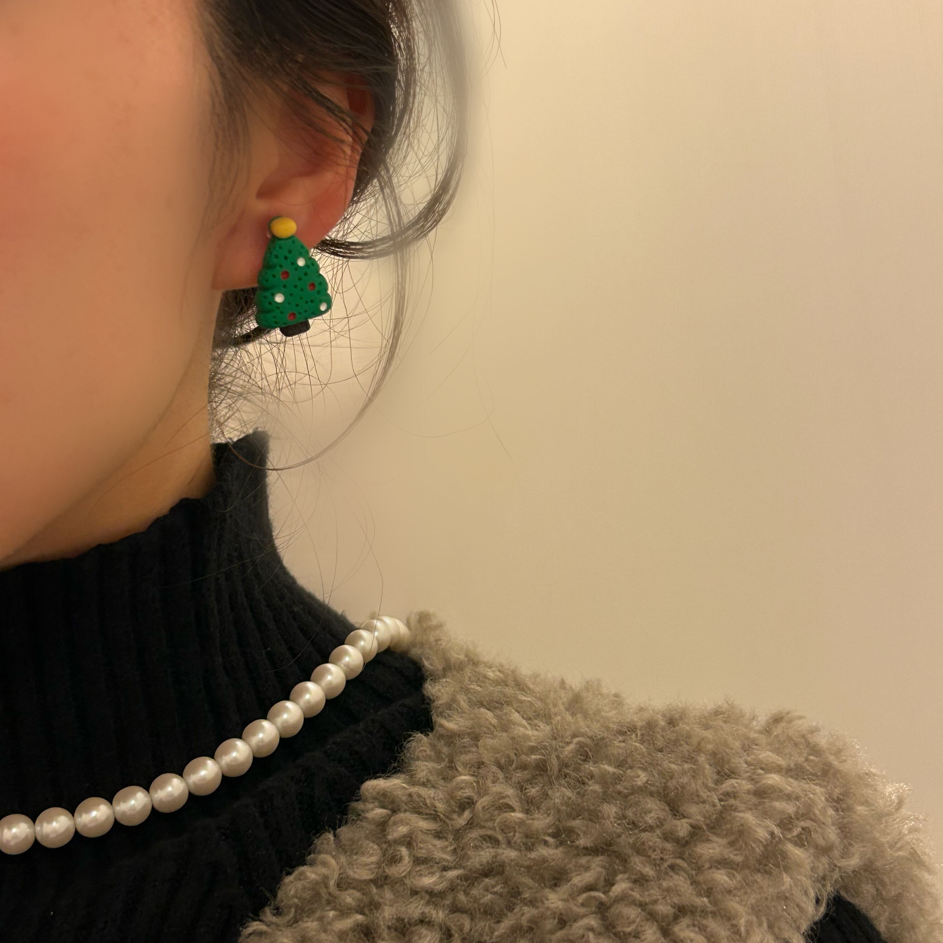 snowman Xmas tree sugar earring 雪だるま クリスマスツリー シュガー 砂糖菓子 イヤリング 樹脂 ピアス 金属アレルギー デイリー 普段使い AKKA