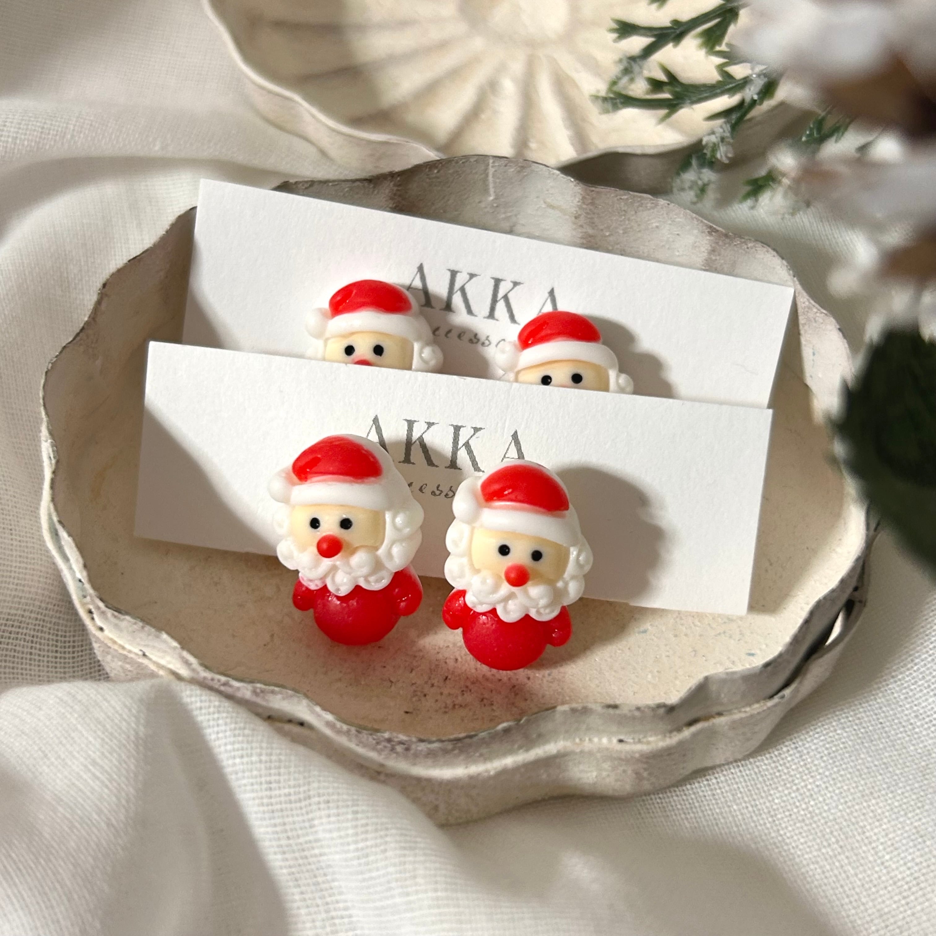 Xmas Santa Claus sugar earring サンタ クリスマス シュガークラフト 砂糖菓子 イヤリング 樹脂 ピアス 金属アレルギー デイリー 普段使い AKKA パーティー お洒落