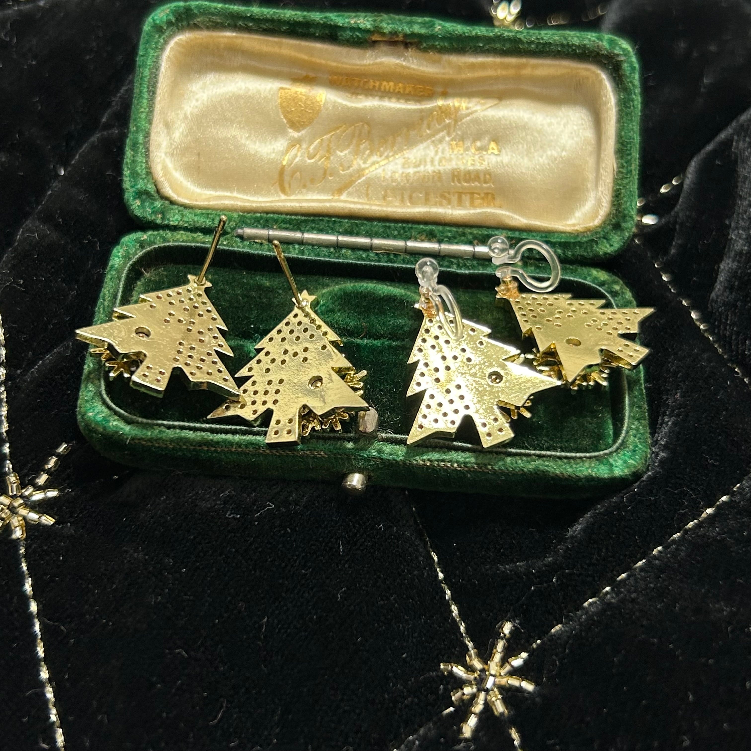 ビジューがクリスマスツリー一面に散りばめられた豪華で贅沢な大ぶり樹脂イヤリングです。