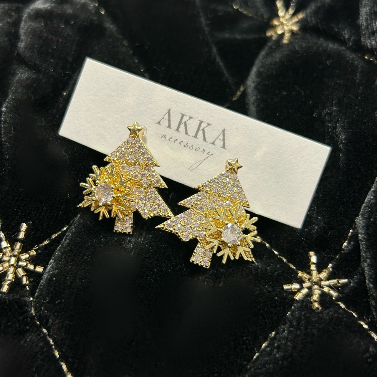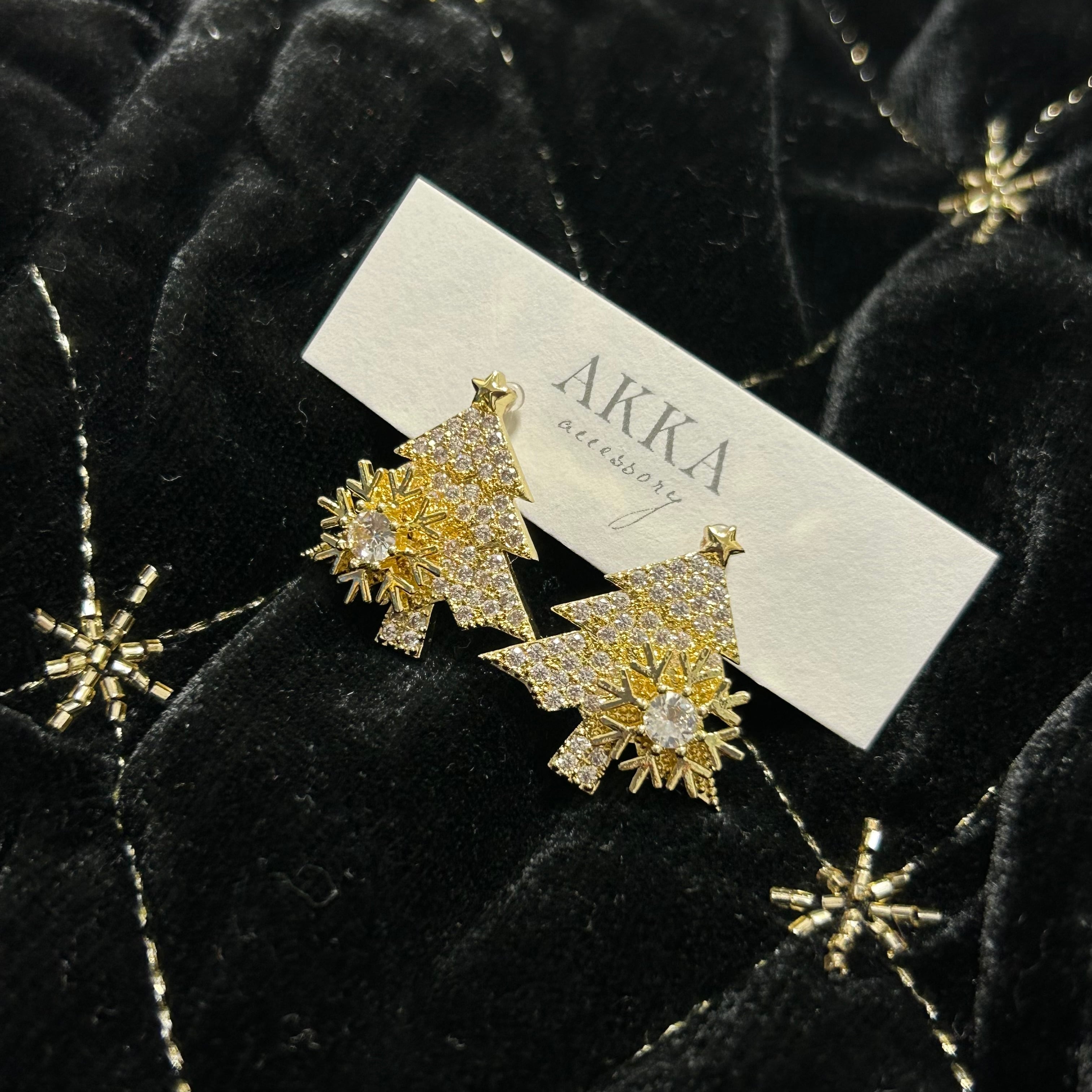 Xmas tree bijou earring クリスマス ビジュー イヤリング 大ぶり 樹脂 スノーフレーク 金属アレルギー パーティー シンプル デイリー 普段使い AKKA