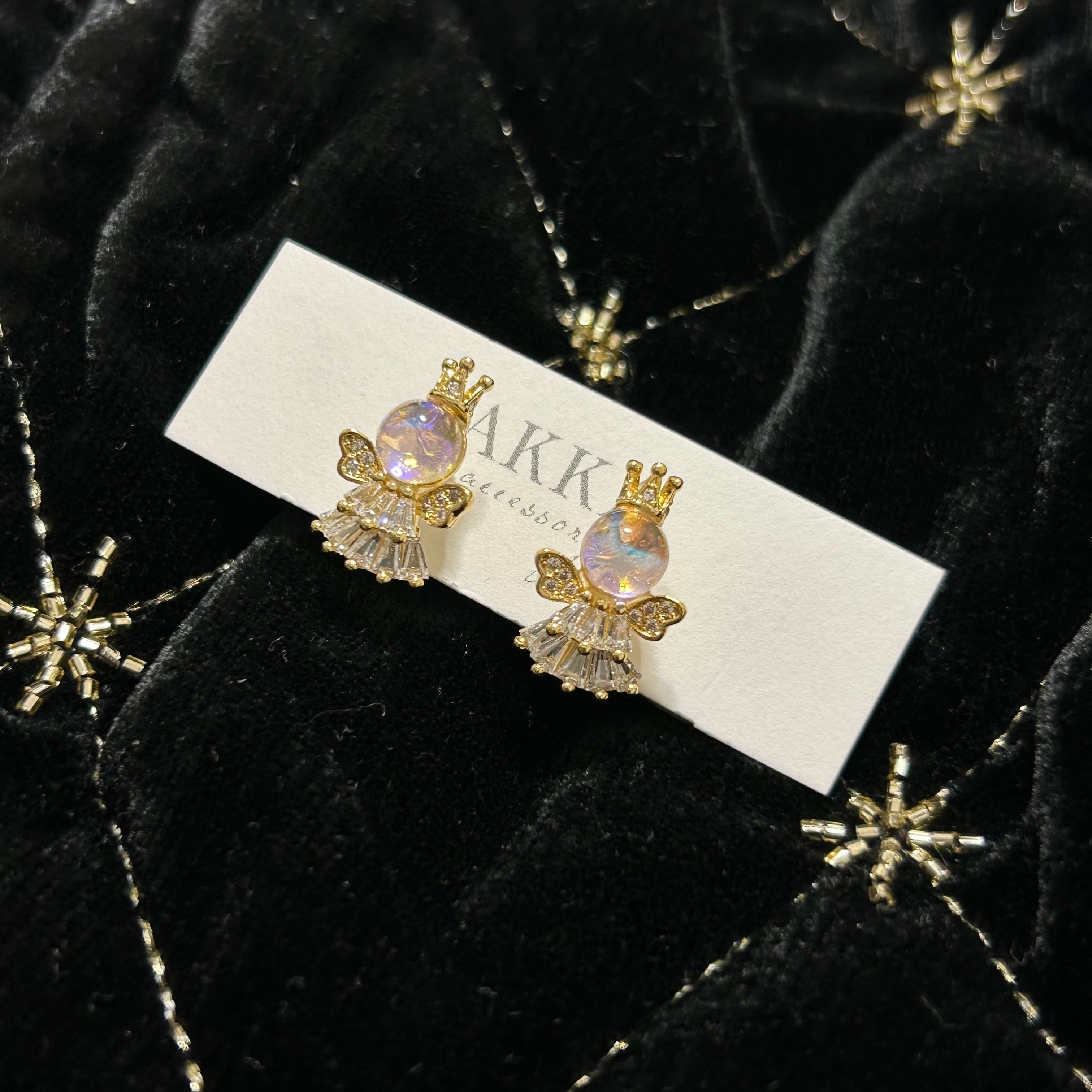Angel aurora bijou earring 天使 オーロラ ビジュー チェーン イヤリング 樹脂 ピアス 金属アレルギー ミニ 小さめ シンプル デイリー 普段使い AKKA エンジェル