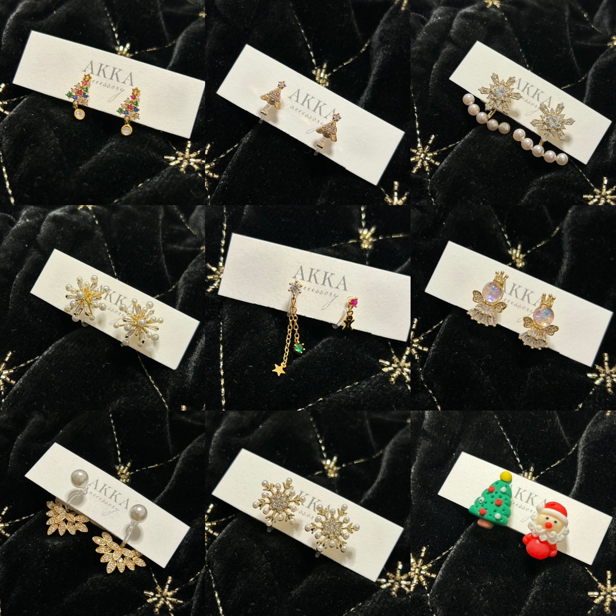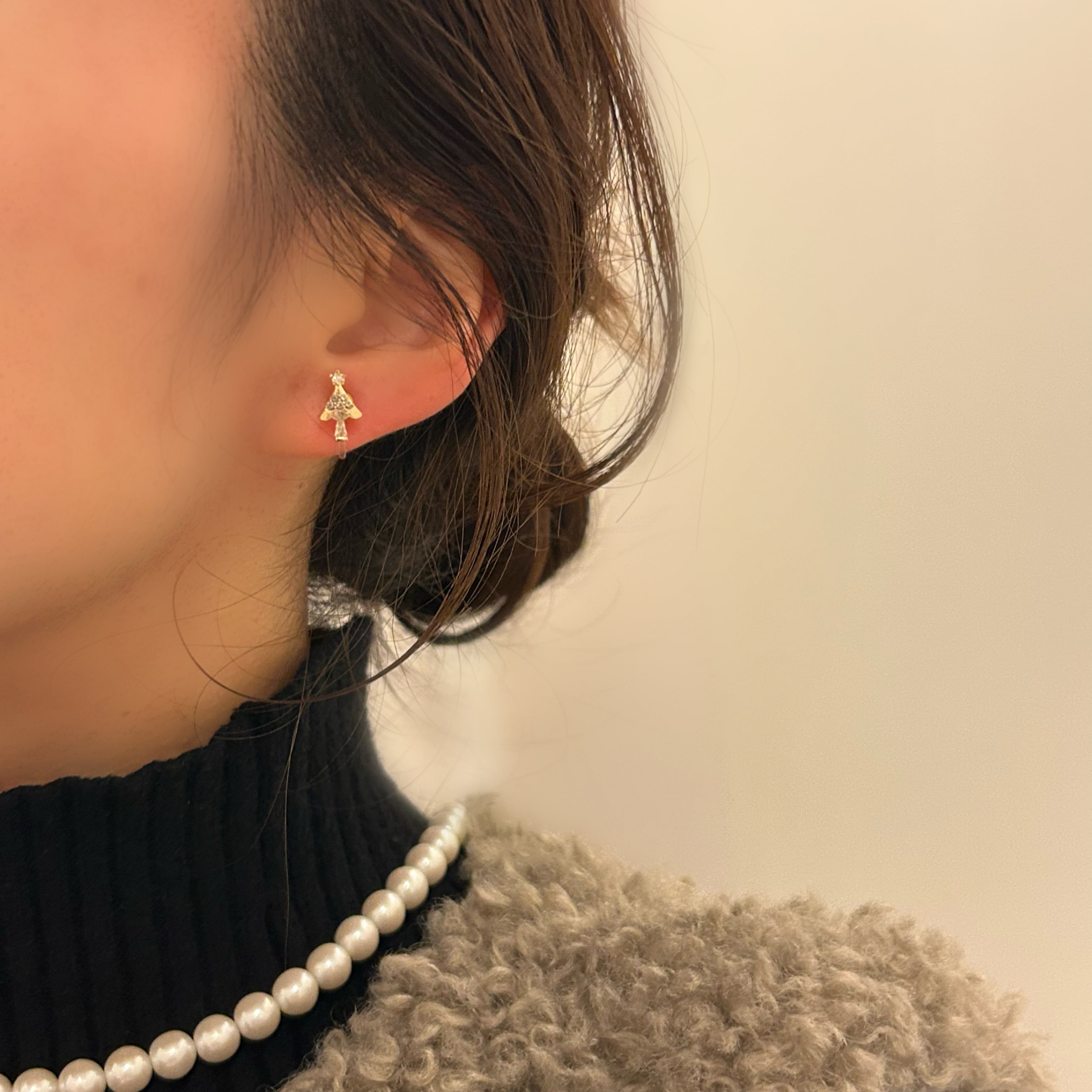 小さなクリスマスツリーが控えめながらもあなたの耳元を照らし、パッと華やかな雰囲気に仕上げてくれます。日常使いはもちろん、小さめなのでオフィスにもオススメです。ツリーの下の方のスカラップ部分が可愛いポイントです。