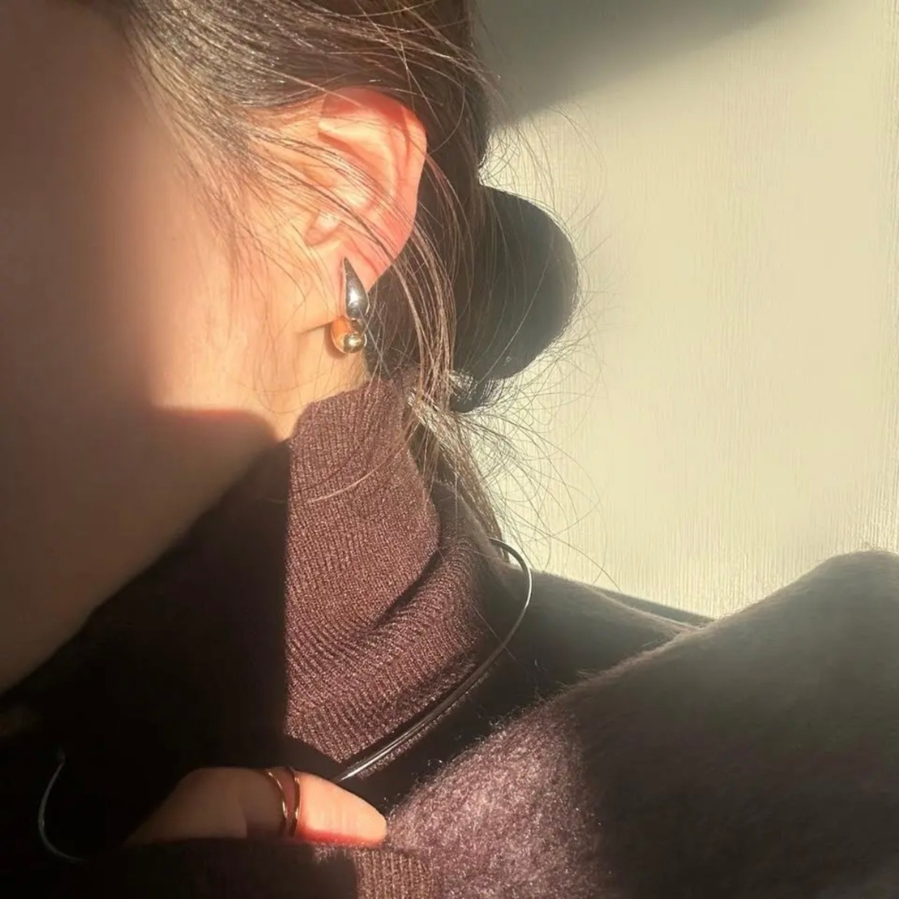 トップにゴールドドロップ、耳の下からはシルバードロップがのぞく立体的で凝ったデザインです。ピアスをしているかのような見た目でお洒落の幅が広がります。普段のファッションをより華やかにに仕上げてくれます。