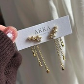 Star moon chain earring スター ムーン ビジュー チェーン イヤリング ピアス 樹脂 金属アレルギー パーティー 普段使い AKKA デイリー 可愛い 高見え
