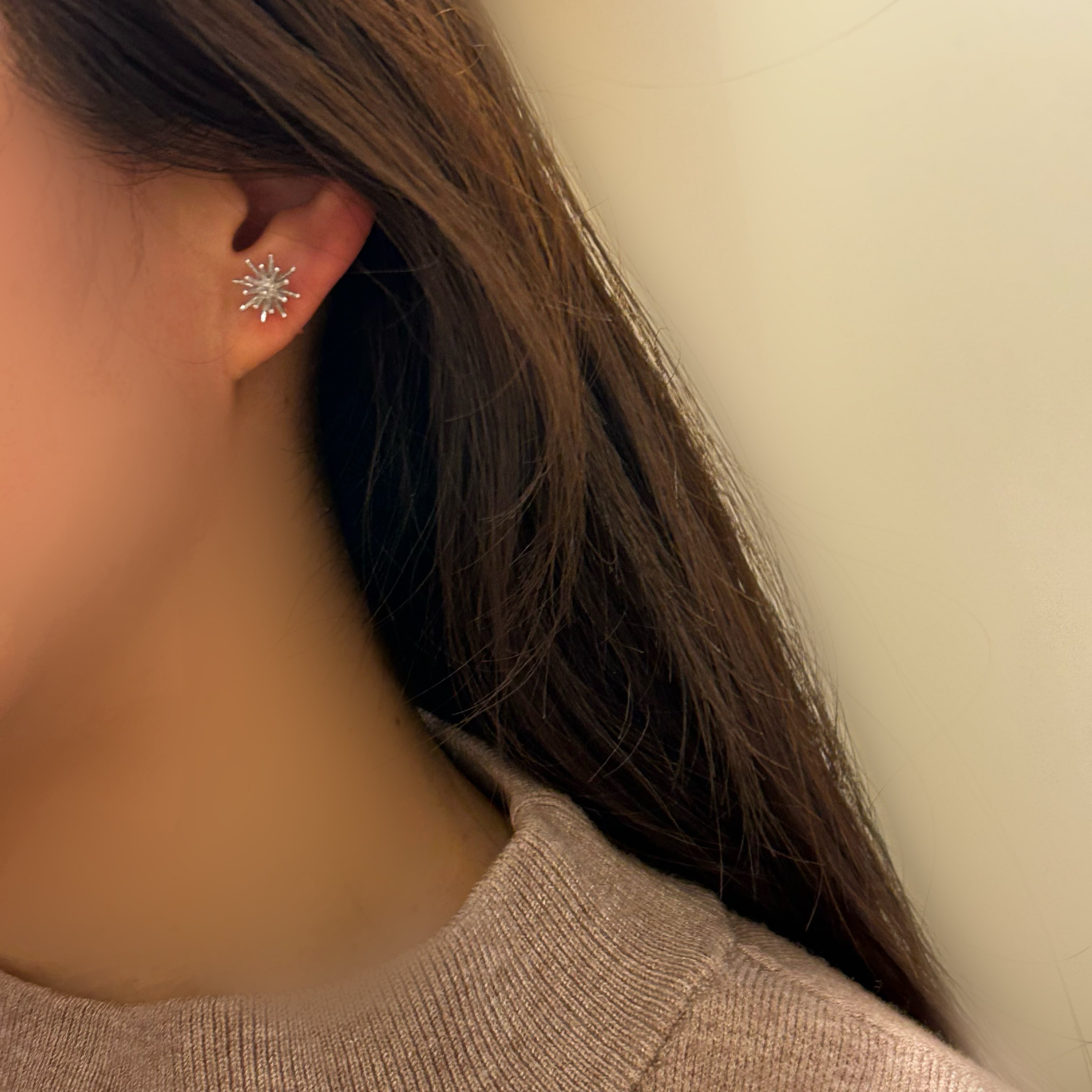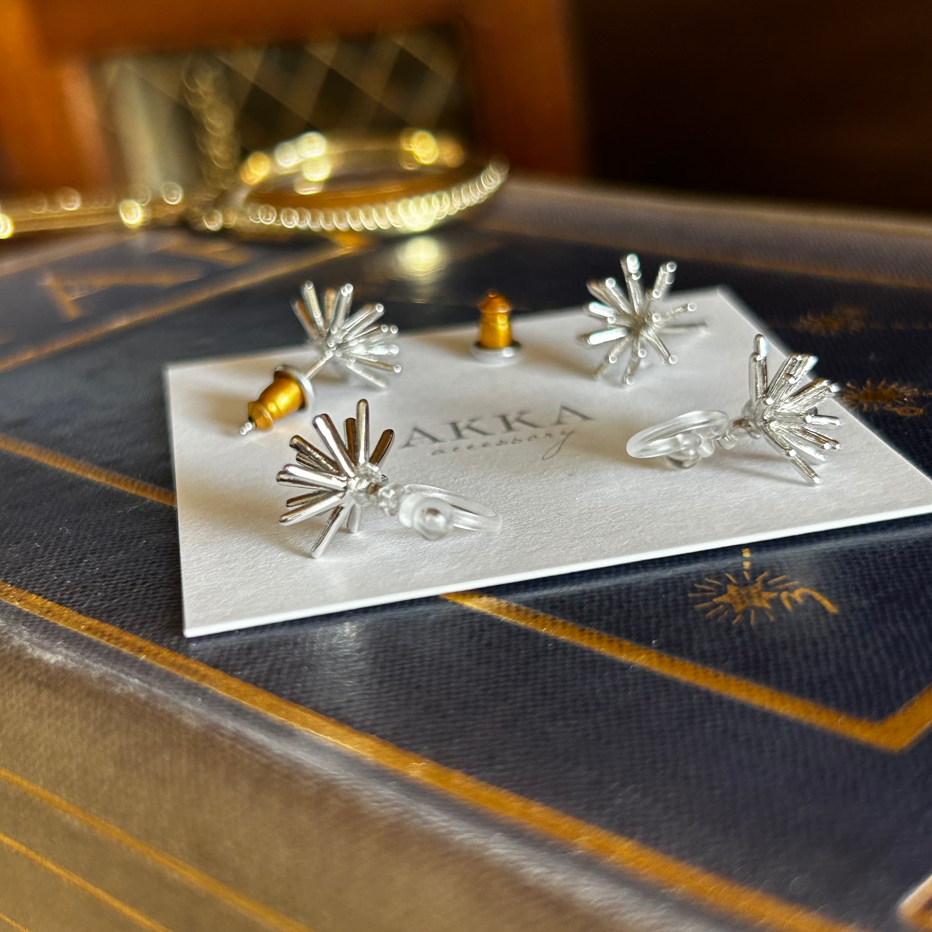 Silver:star burst design earring ニッケルフリー silver925 スター 樹脂イヤリング ピアスに見える ピアス風 痛くない アレルギー AKKA 金アレ ピアス 小さめ ミニ