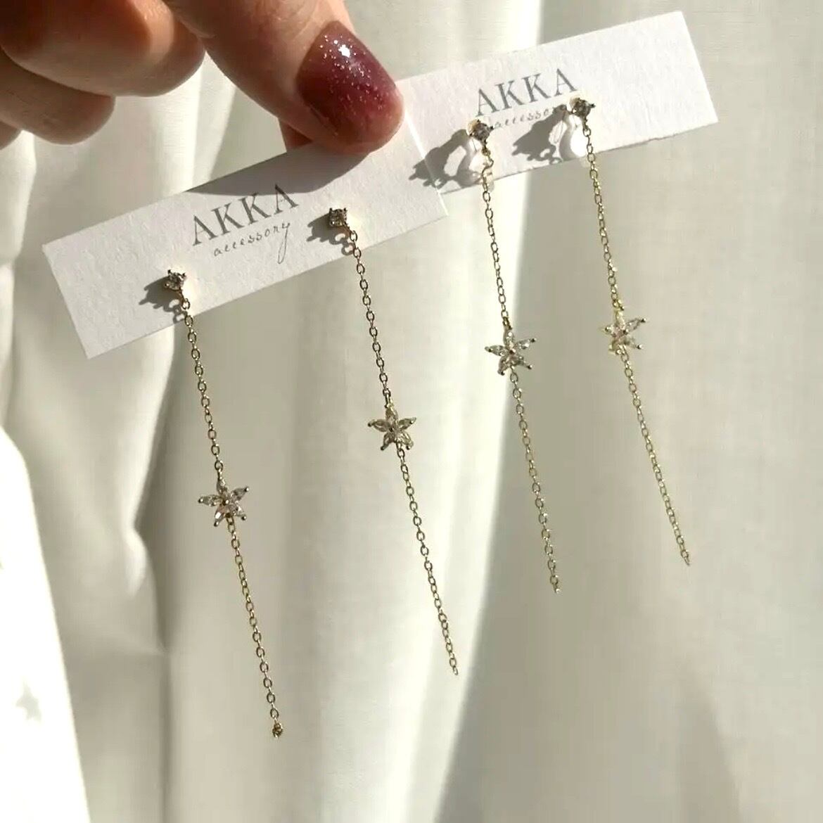 S925製素材・高品質キュービックジルコニアを使用したアメリカンピアス風チェーンイヤリングです。