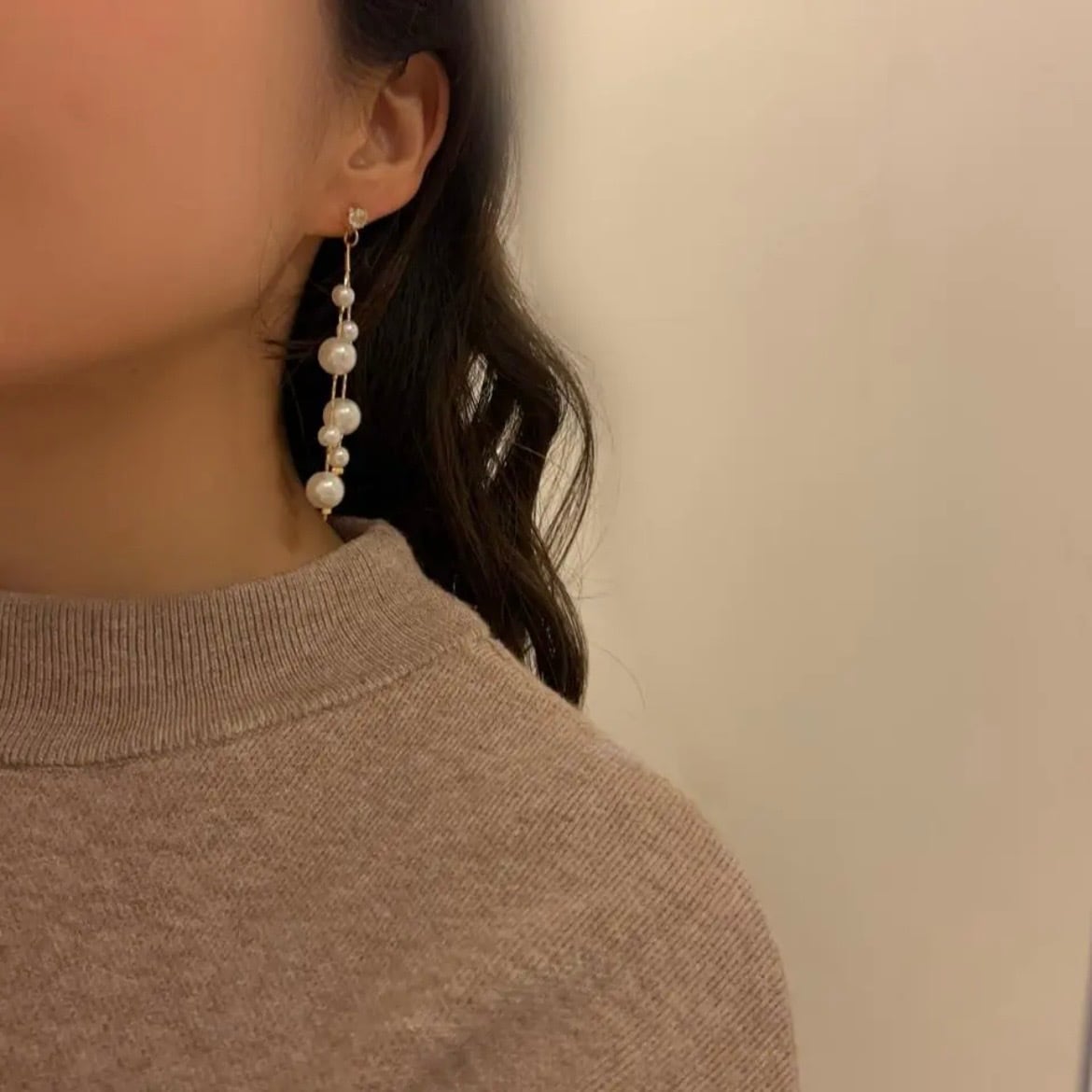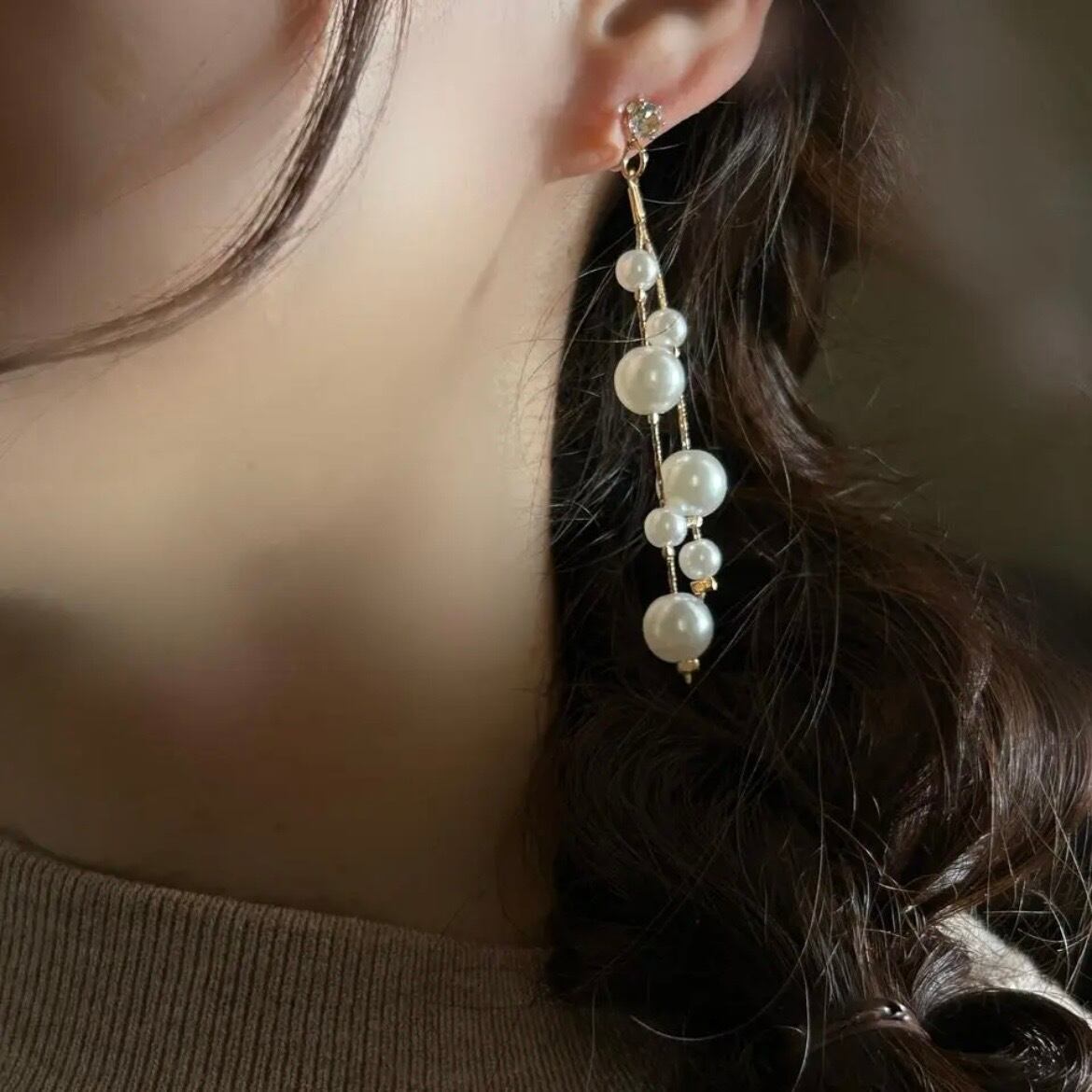 パールを贅沢に使用したチェーンイヤリングです。