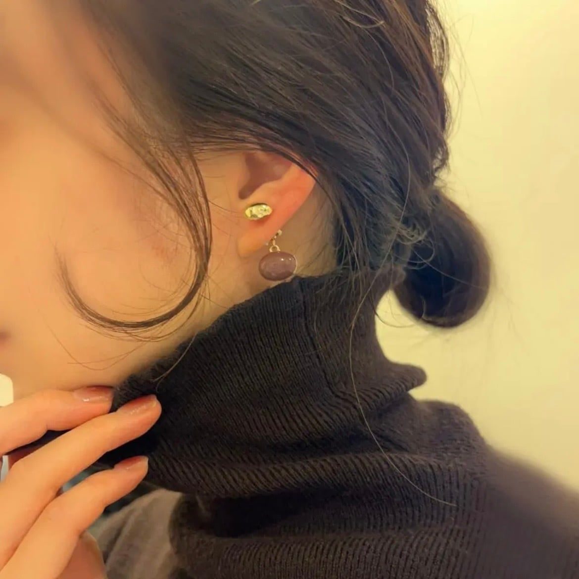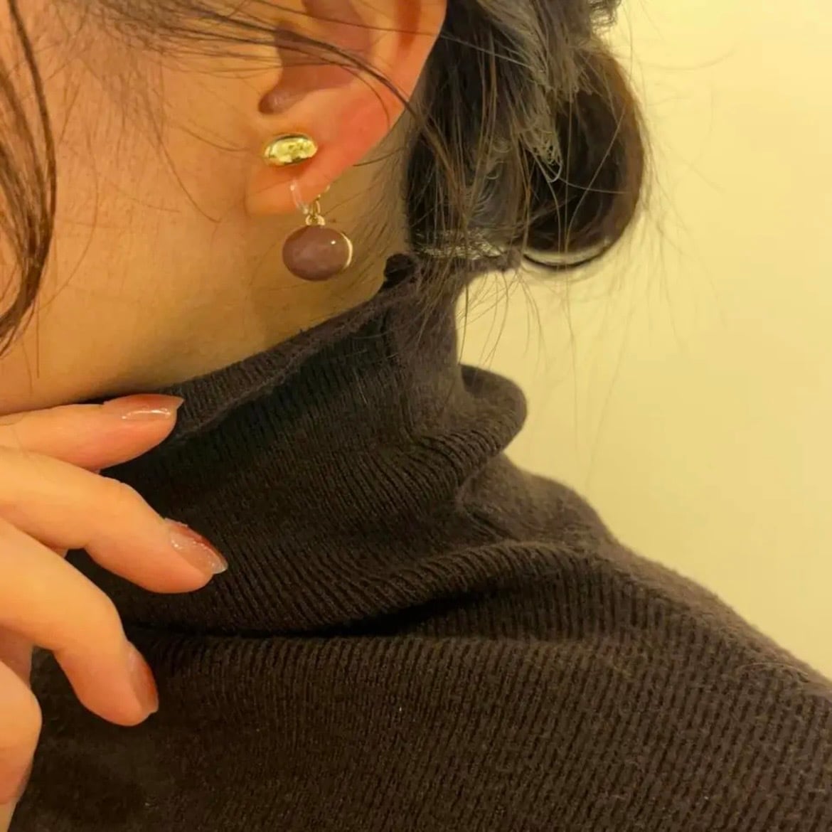 enamel drop charm earring エナメル ドロップ チャーム イヤリング ブラウン 茶色 普段使い お洒落 バックチャーム ピアスに見える