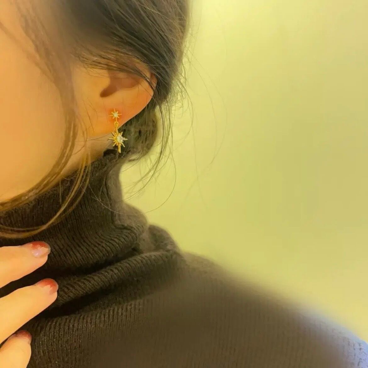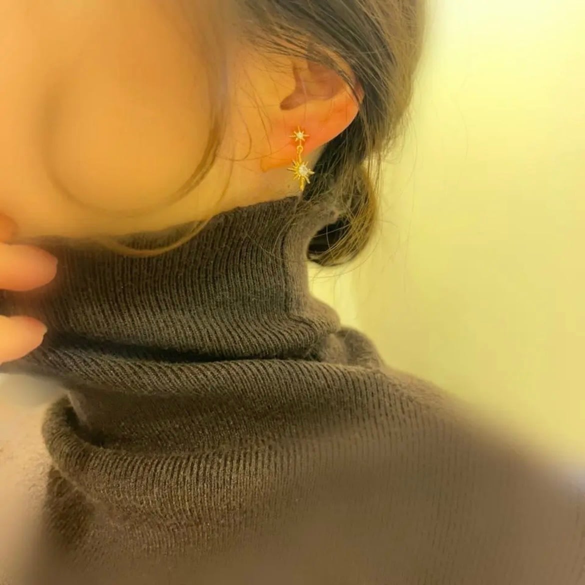 大小それぞれの星モチーフの真ん中には菱形のキュービックジルコニアが輝き、耳元をキラキラと輝かせてくれます。真鍮素材に16kゴールドメッキ加工をし、艶やかな質感が美しいです。ニードル一本一本が煌めき、ミニサイズながらも存在感があります。あまり見かけない遊び心のあるデザインが、周りと差を付けるポイントです。普段使いにもお出かけにもおすすめの万能アイテムです。