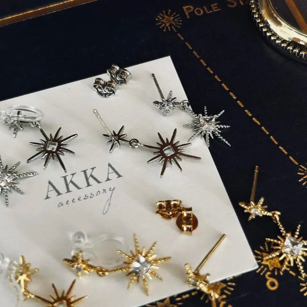 細く繊細なニードルモチーフが幻想的なスターモチーフイヤリングです。