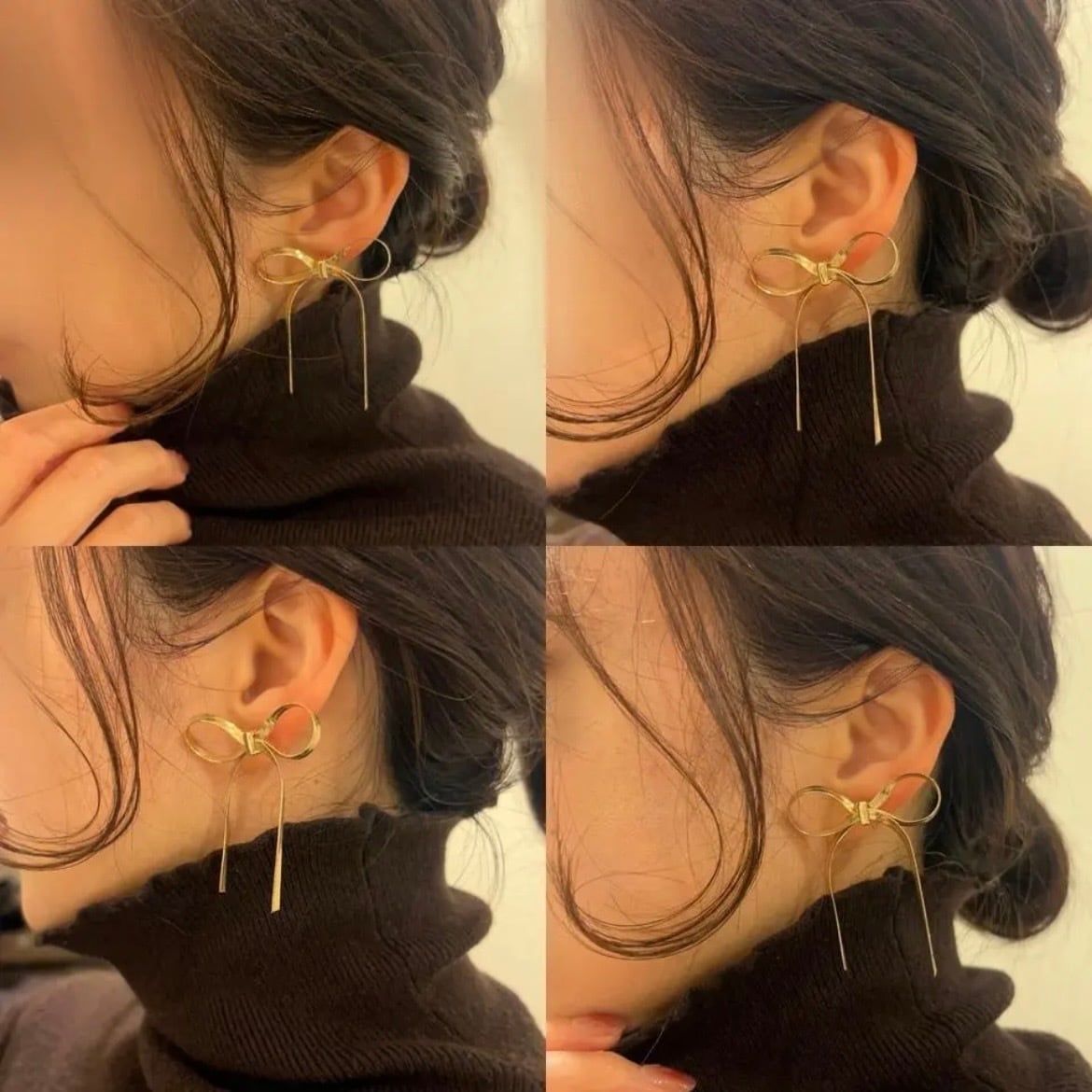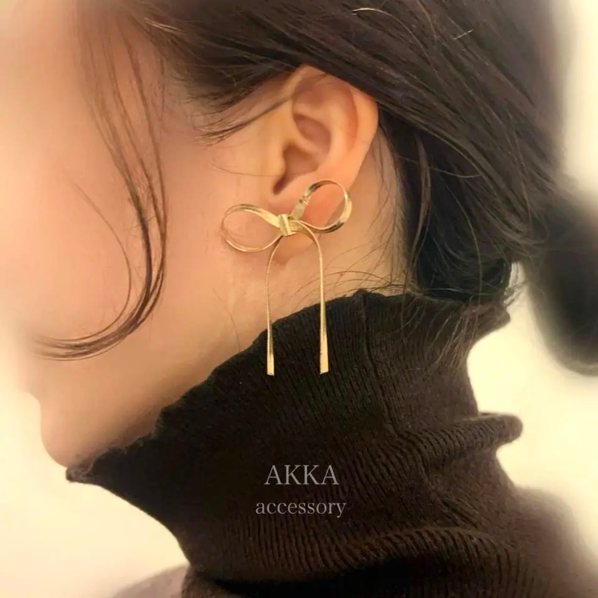 stainless◆ribbon snake chain earrings リボン スネークチェーン イヤリング カジュアル デニム 普段使い お洒落 金属アレルギー 樹脂 ピアス ノンホール デイリー 痛くない