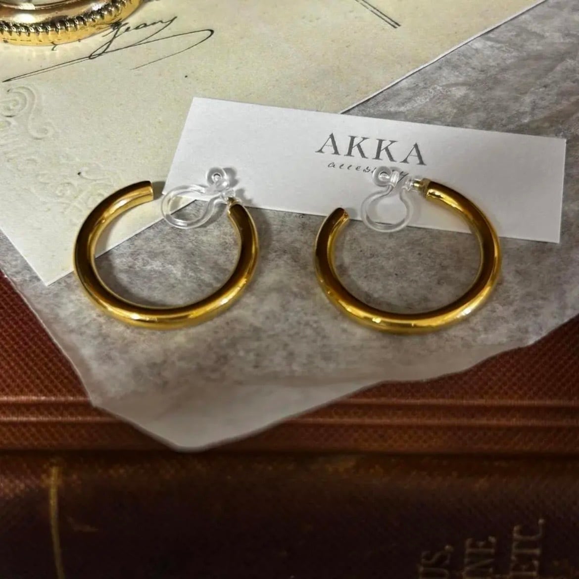 25mm stainless hoop earring 18kgp シンプル ステンレス製 フープイヤリング 樹脂イヤリング 樹脂ピアス 金属アレルギー対応 ノンホールピアス フープピアス お洒落 高見え