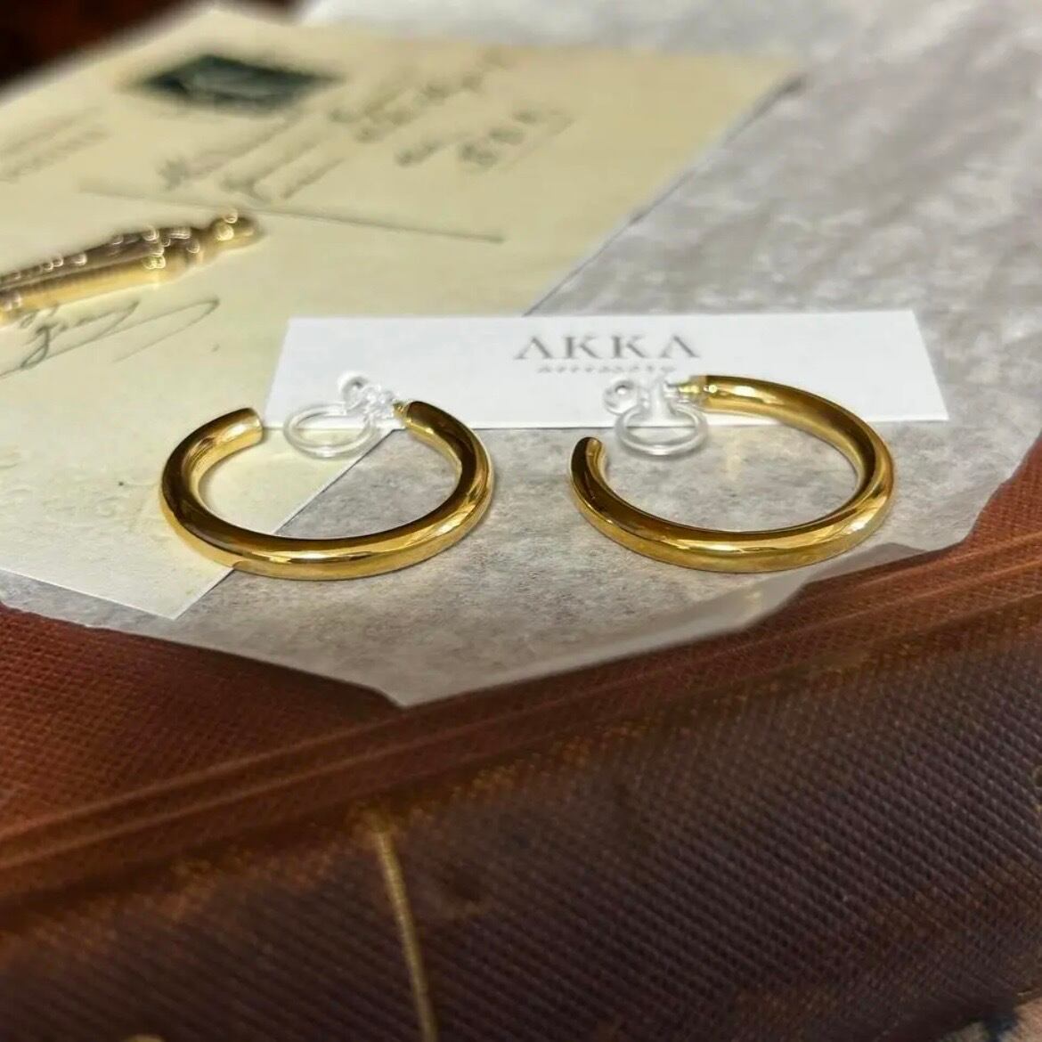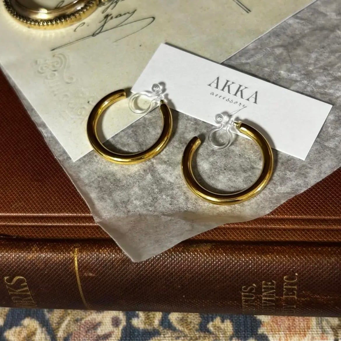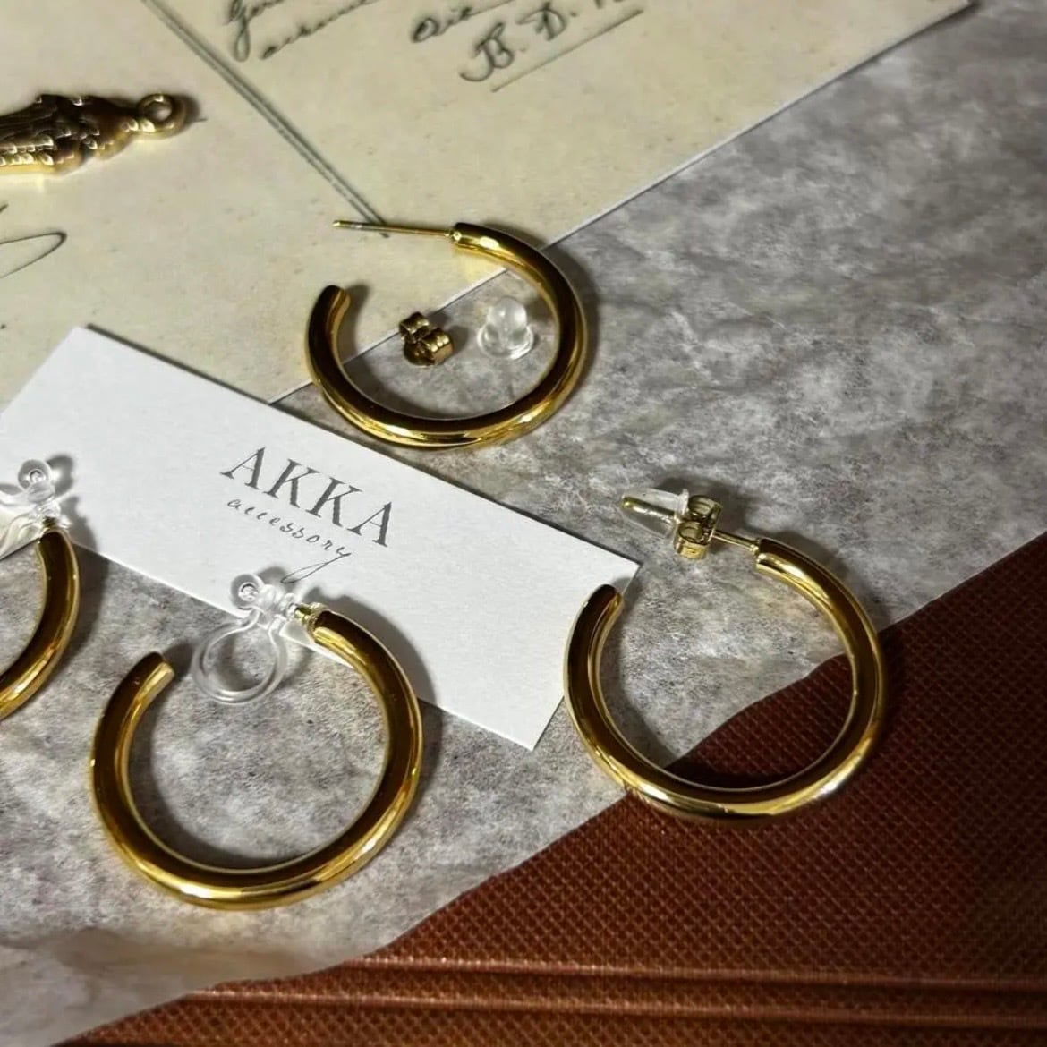 直径25ミリで使い勝手の良いサイズ感と、シンプルで重宝するデザインなので様々なファッションに馴染みやすくとてもおすすめです。フープイヤリング初心者様にも使いやすいサイズ感です。