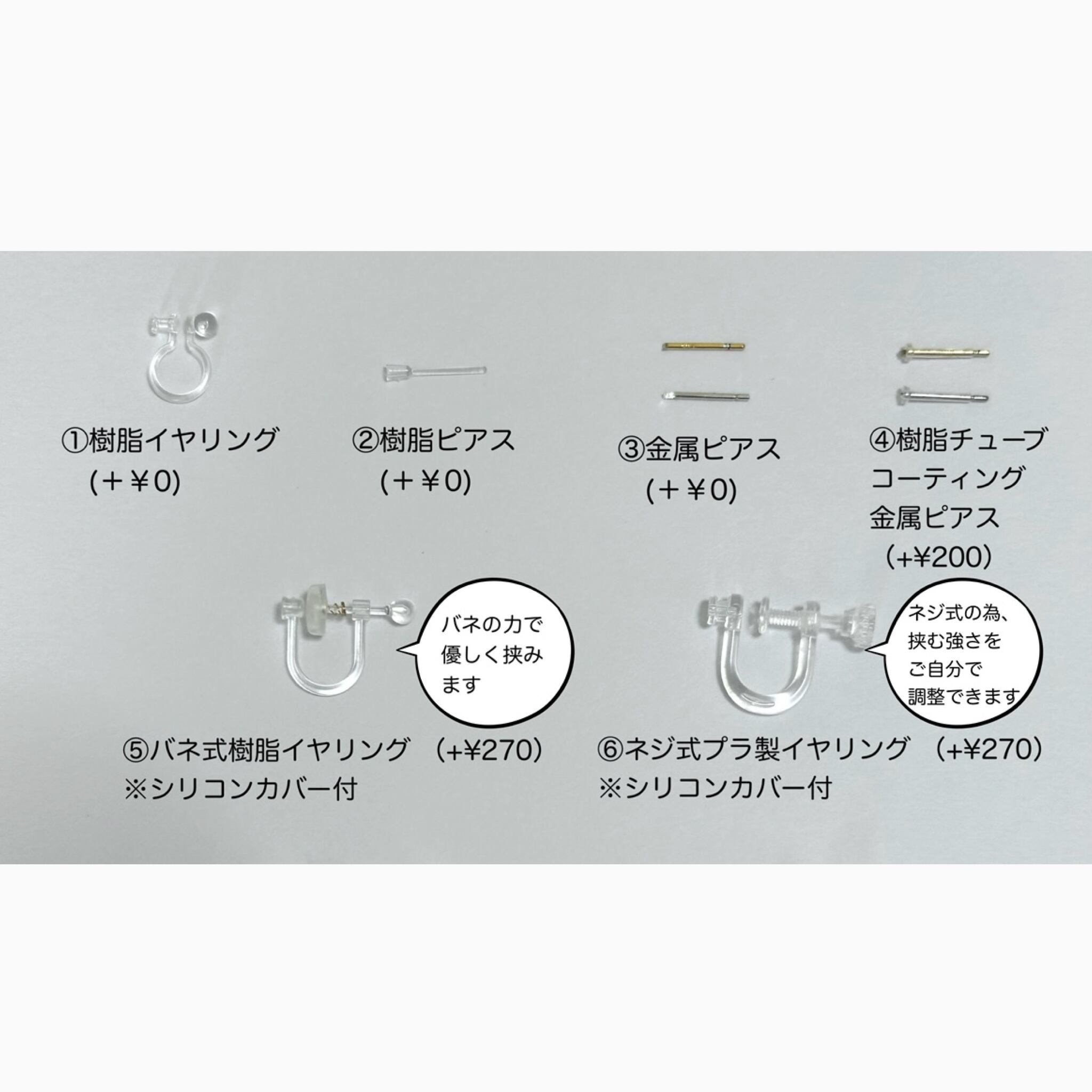 ⑤バネ式樹脂イヤリング ※シリコンカバー付(+¥270)