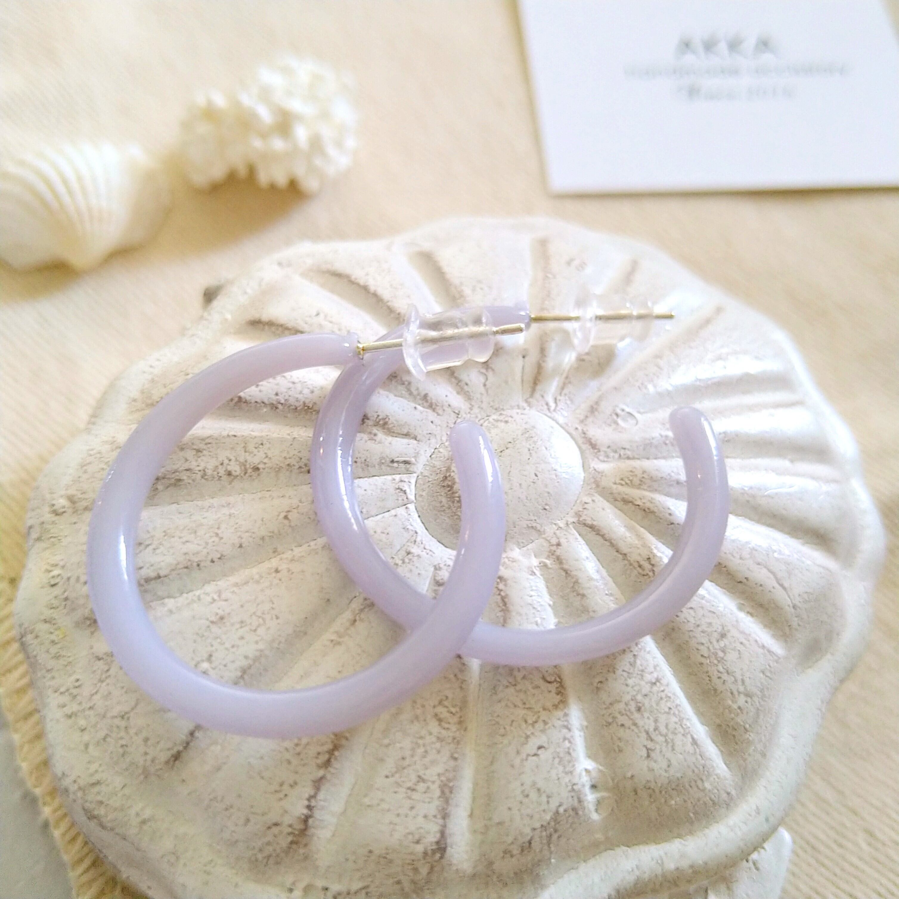 くすみパープルフープイヤリング フープピアス樹脂イヤリング樹脂ピアスノンホールピアス金属アレルギー