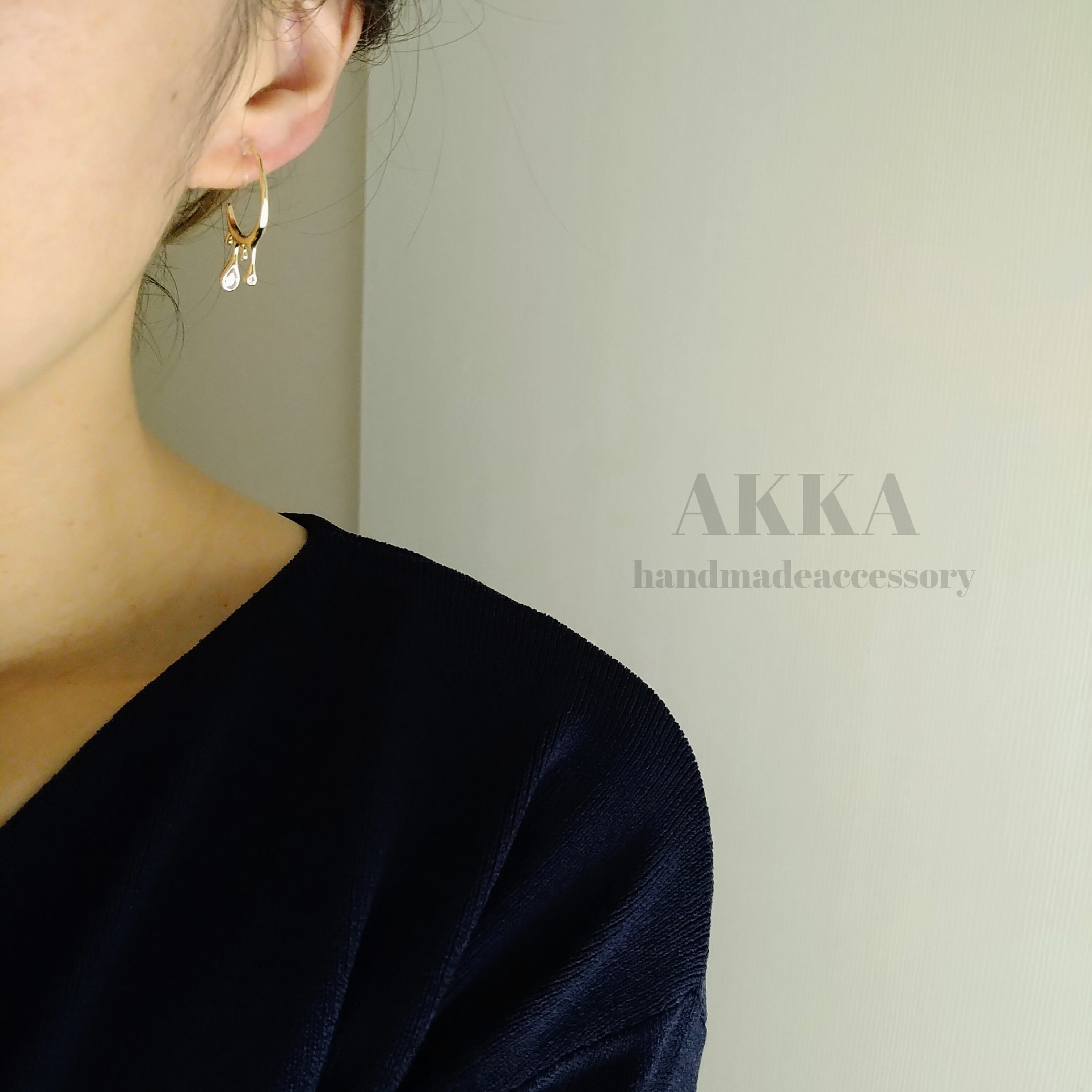 14kゴールド◆変形フープイヤリング 韓国樹脂イヤリングビジュー韓国ノンホールピアス金属アレルギー大ぶりシンプル