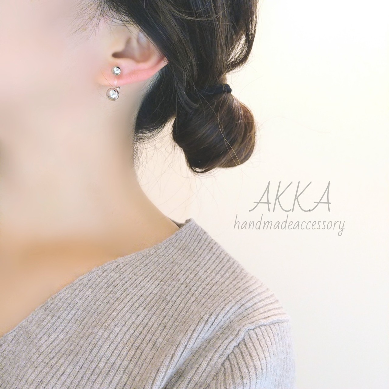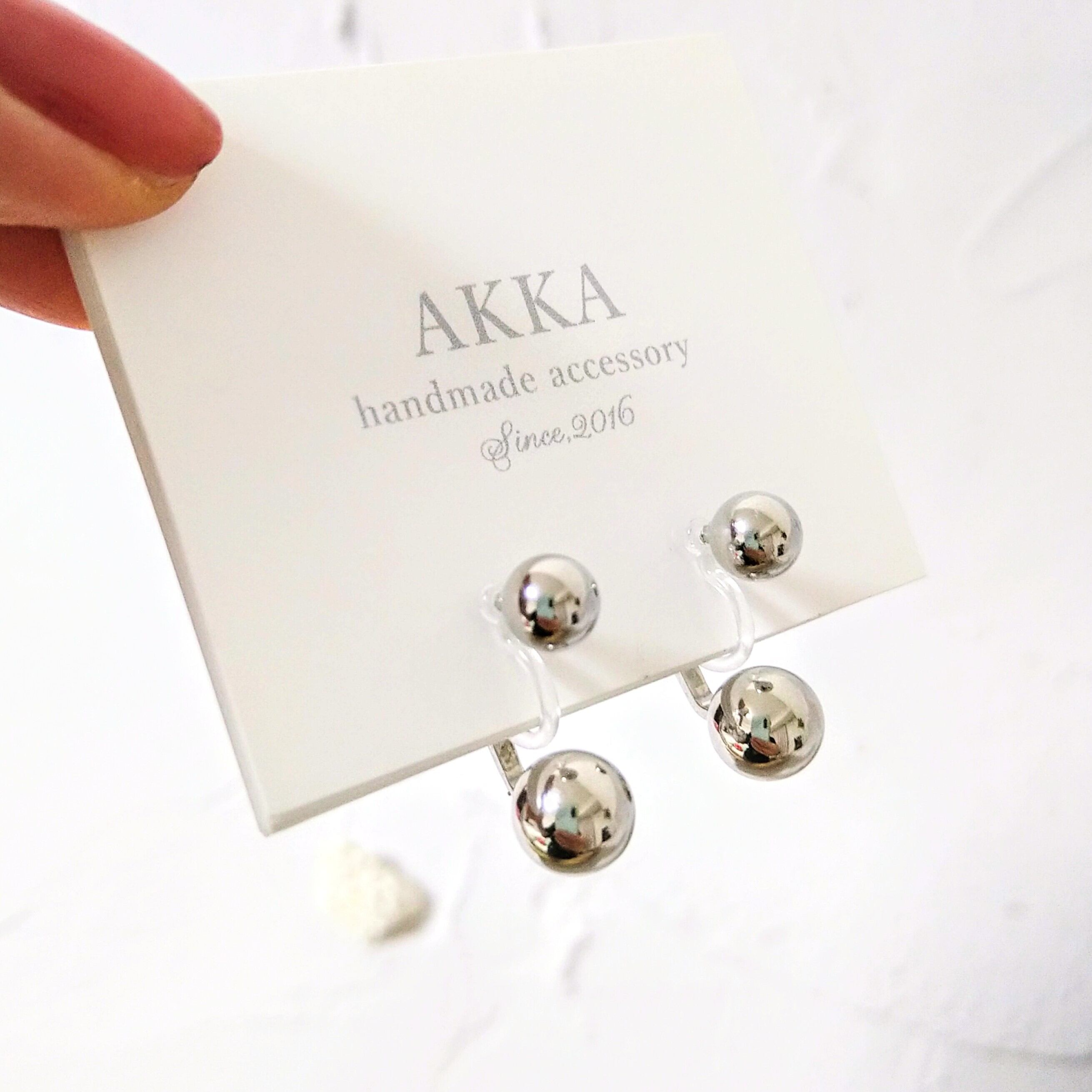 2つのシルバーボールが印象的な樹脂イヤリングです。
