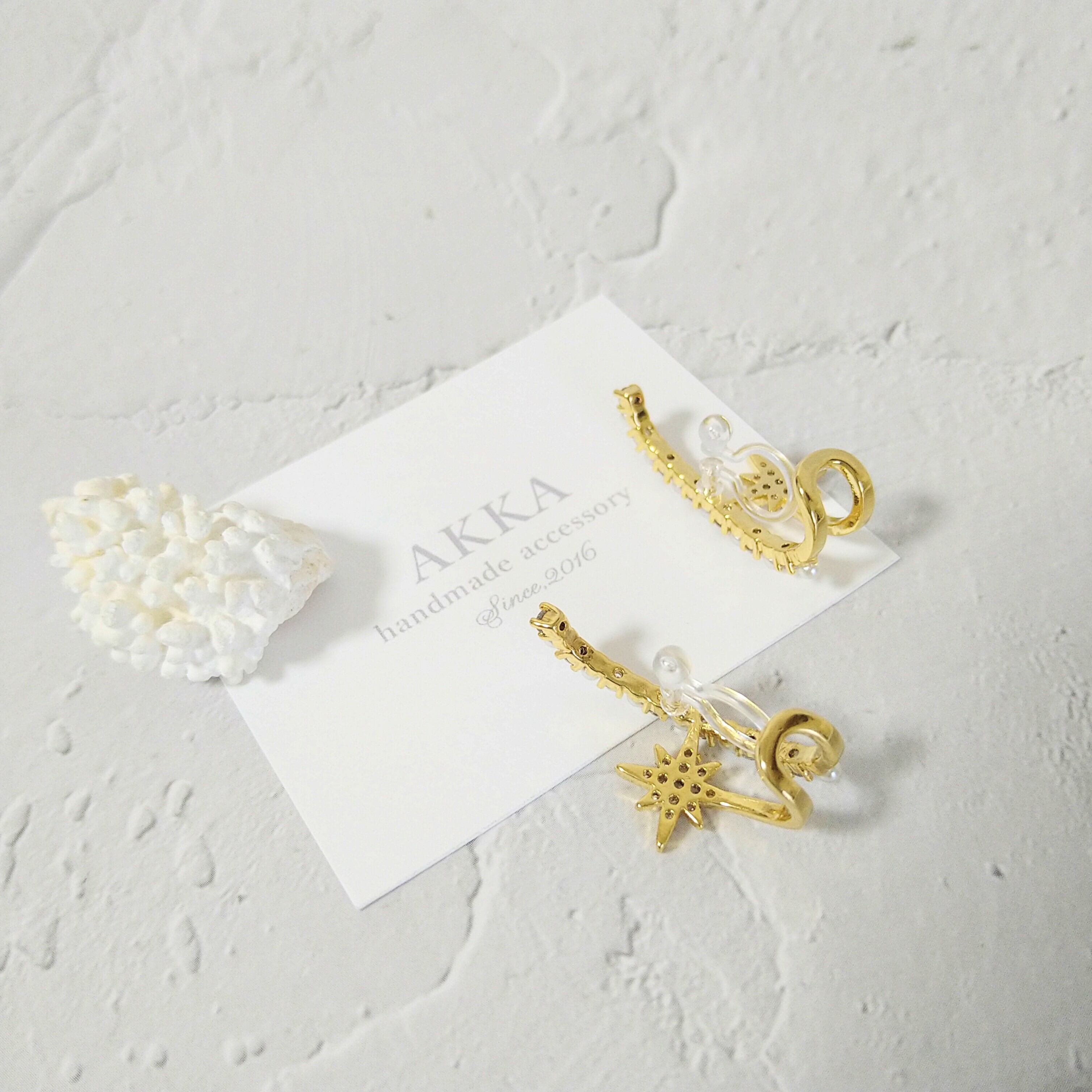 きらりと輝くスターモチーフが印象的な樹脂イヤリングです。