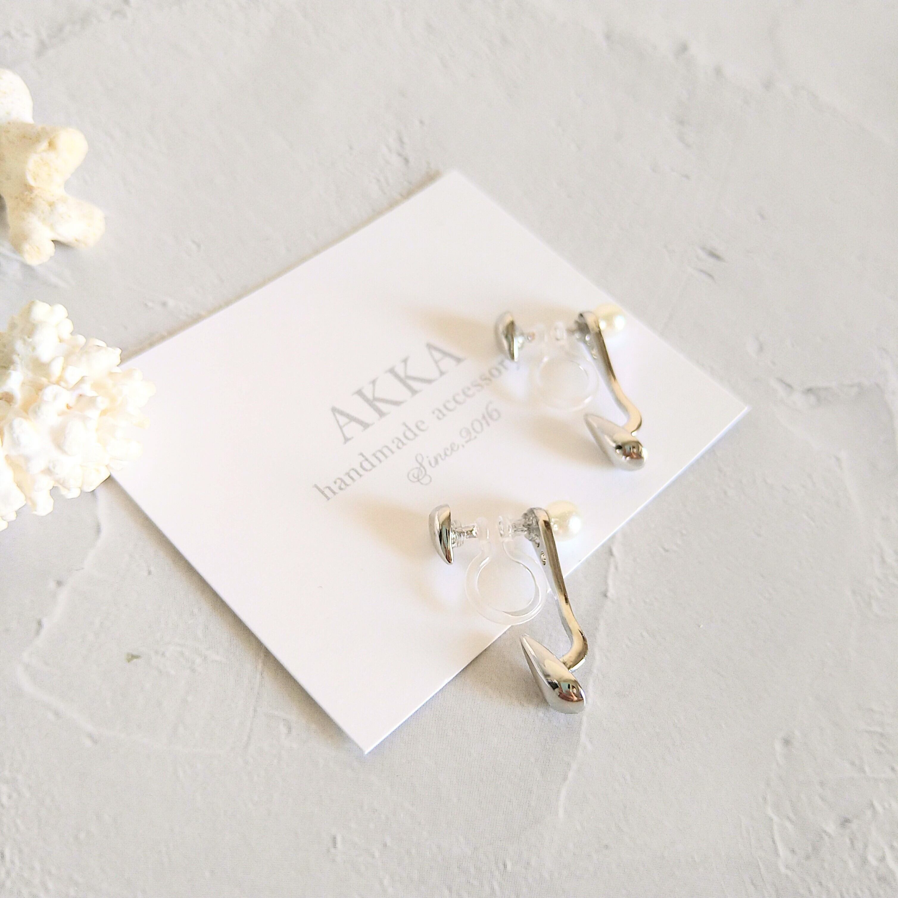 シルバーモチーフのシンプルイヤリング 樹脂ピアス金属ピアスパール樹脂イヤリングノンホールピアス金属アレルギー対応