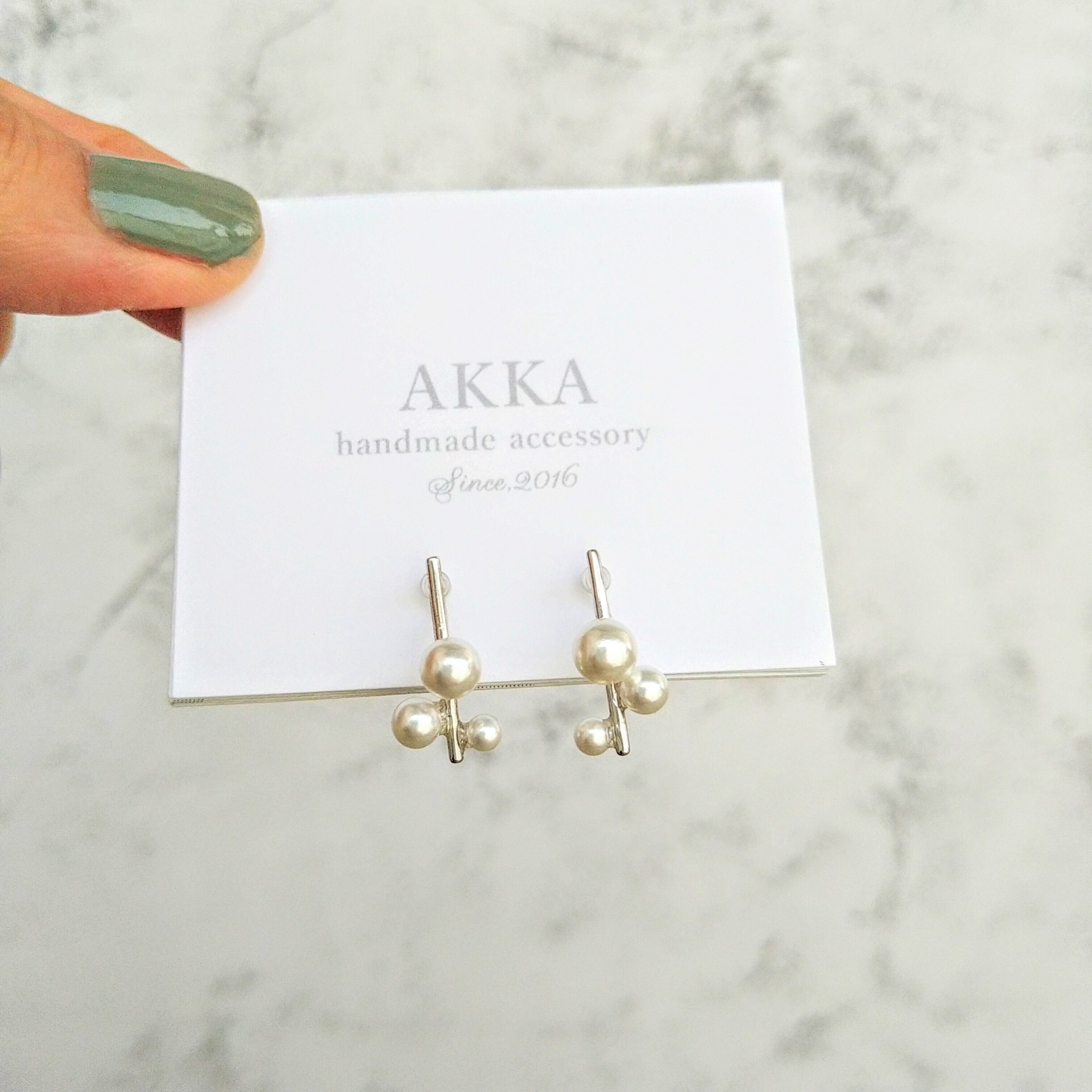パールとシルバーカラーバーが上品なシルバー925純銀製の樹脂イヤリングです。