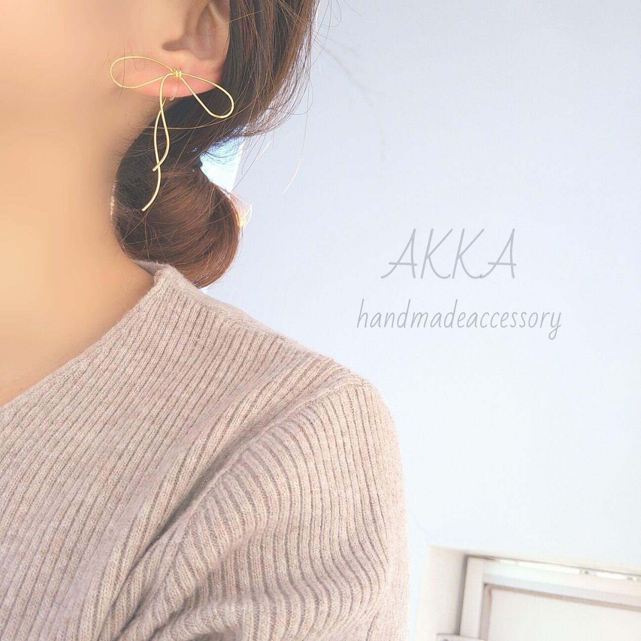 大ぶりのワイヤーリボンが可愛い樹脂イヤリングです。
