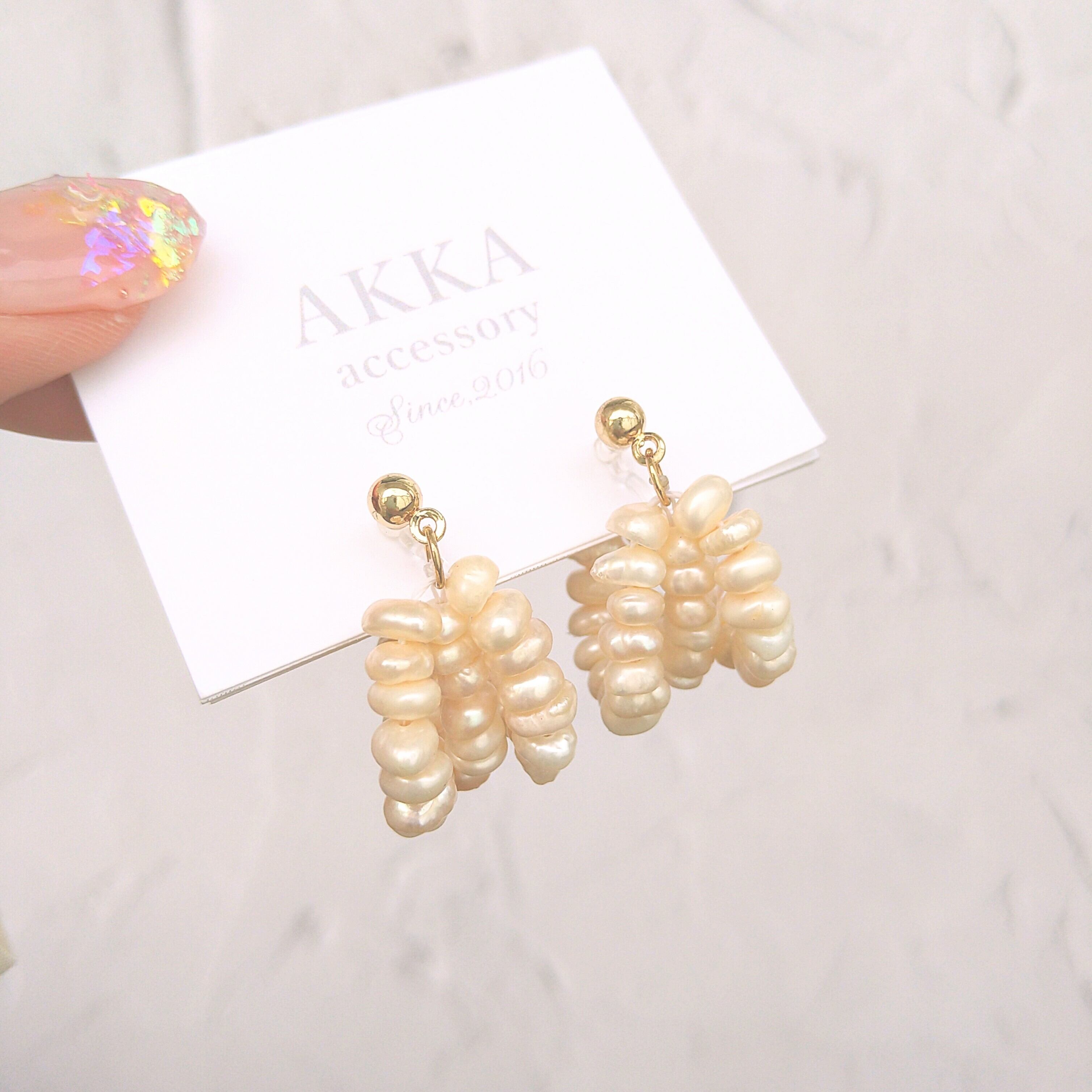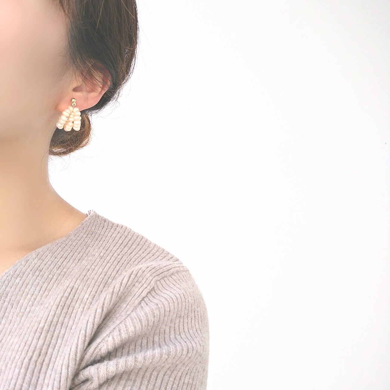 たっぷりの淡水パールを使用した樹脂イヤリングです。