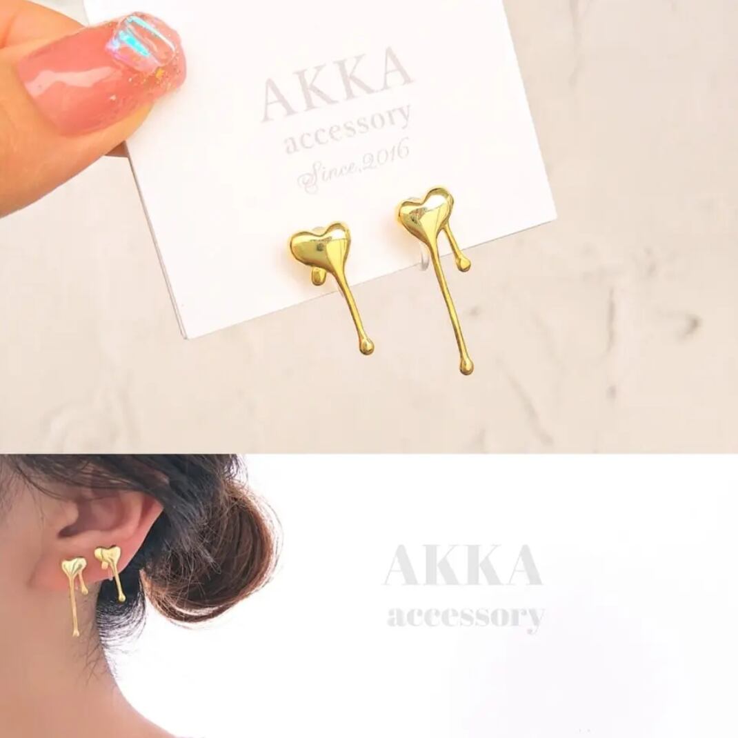 とろけるハートの樹脂イヤリング アシンメトリー樹脂ピアス金属アレルギーノンホールピアス18kgpシルバー925
