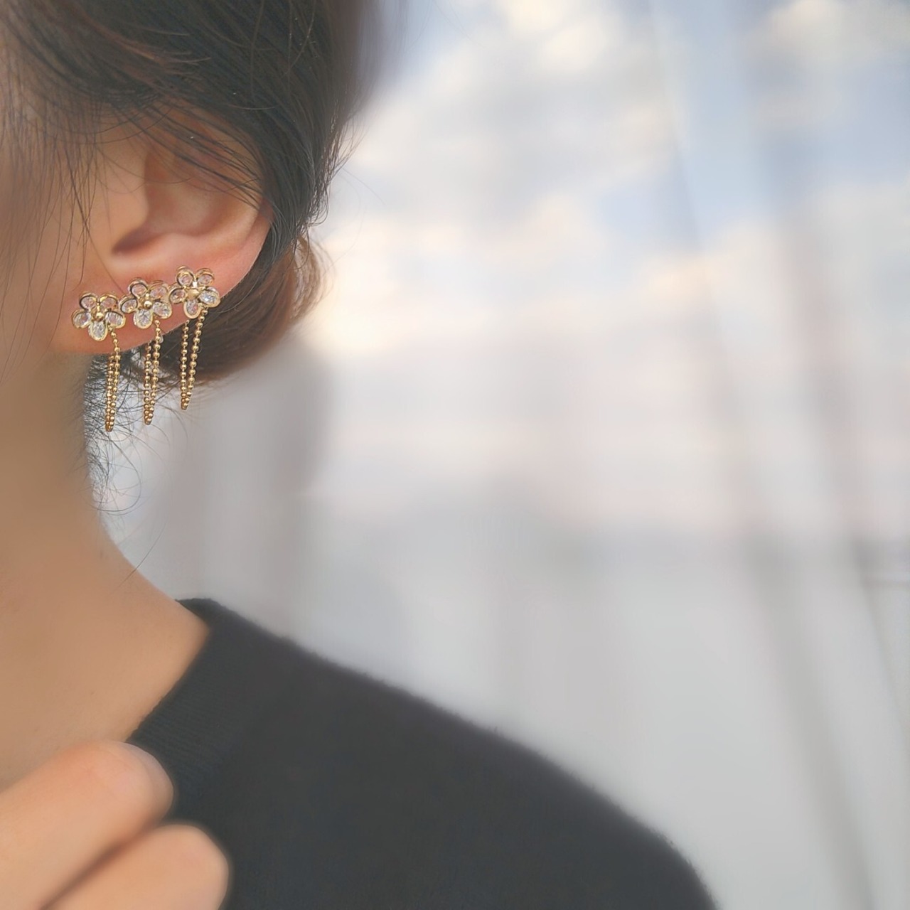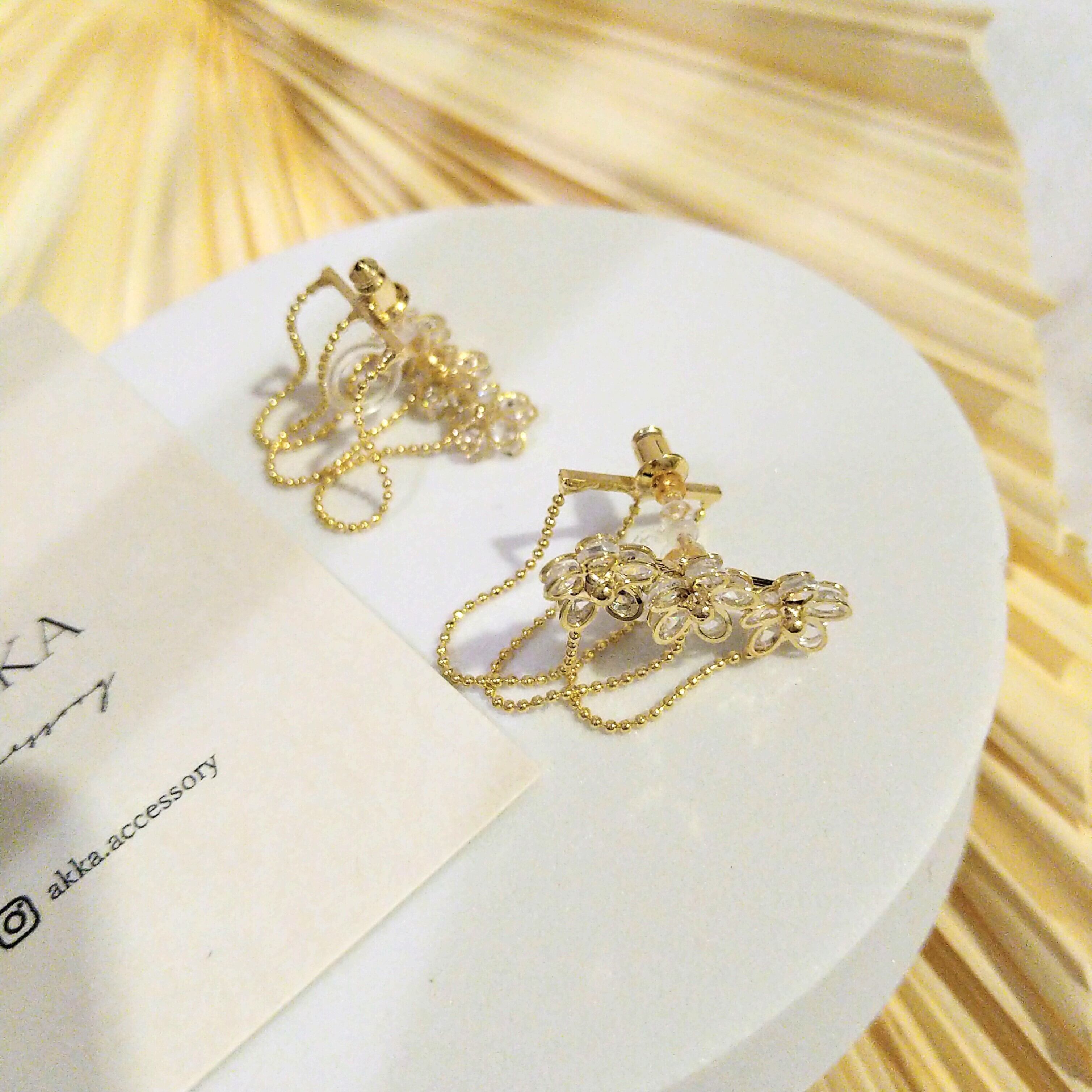 18kgp◆ flower hoop chain earrings フラワーチェーンフープイヤリングフープピアス花可愛いウエディング結婚式