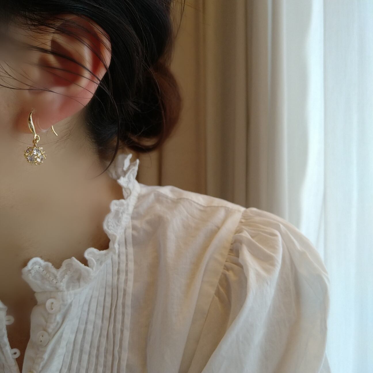 14kgp◆Zirconia fook earrings ジルコニアボールのフック樹脂イヤリング シンプルフープイヤリングフープピア 金属アレルギーノンホールピアスイヤカフ一粒ゴールド