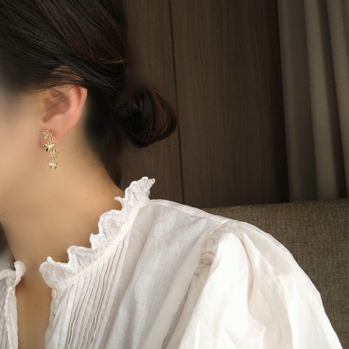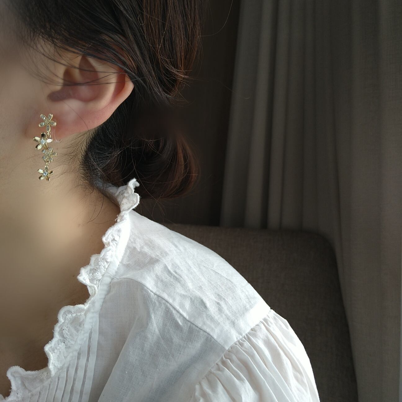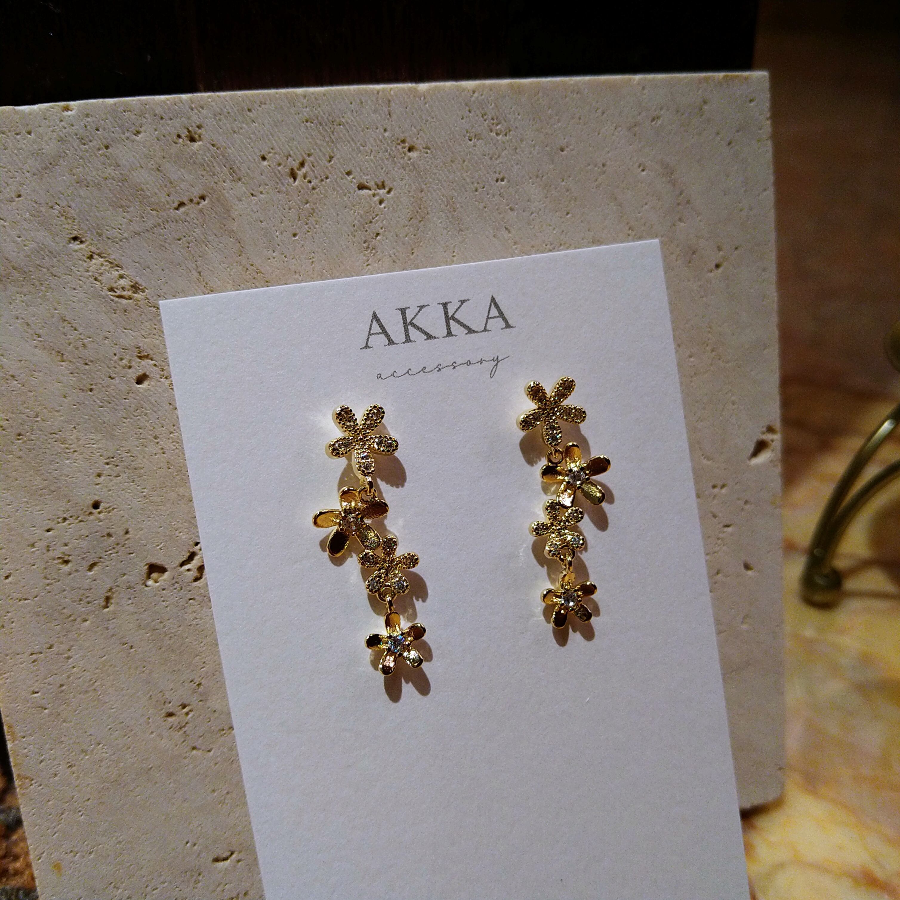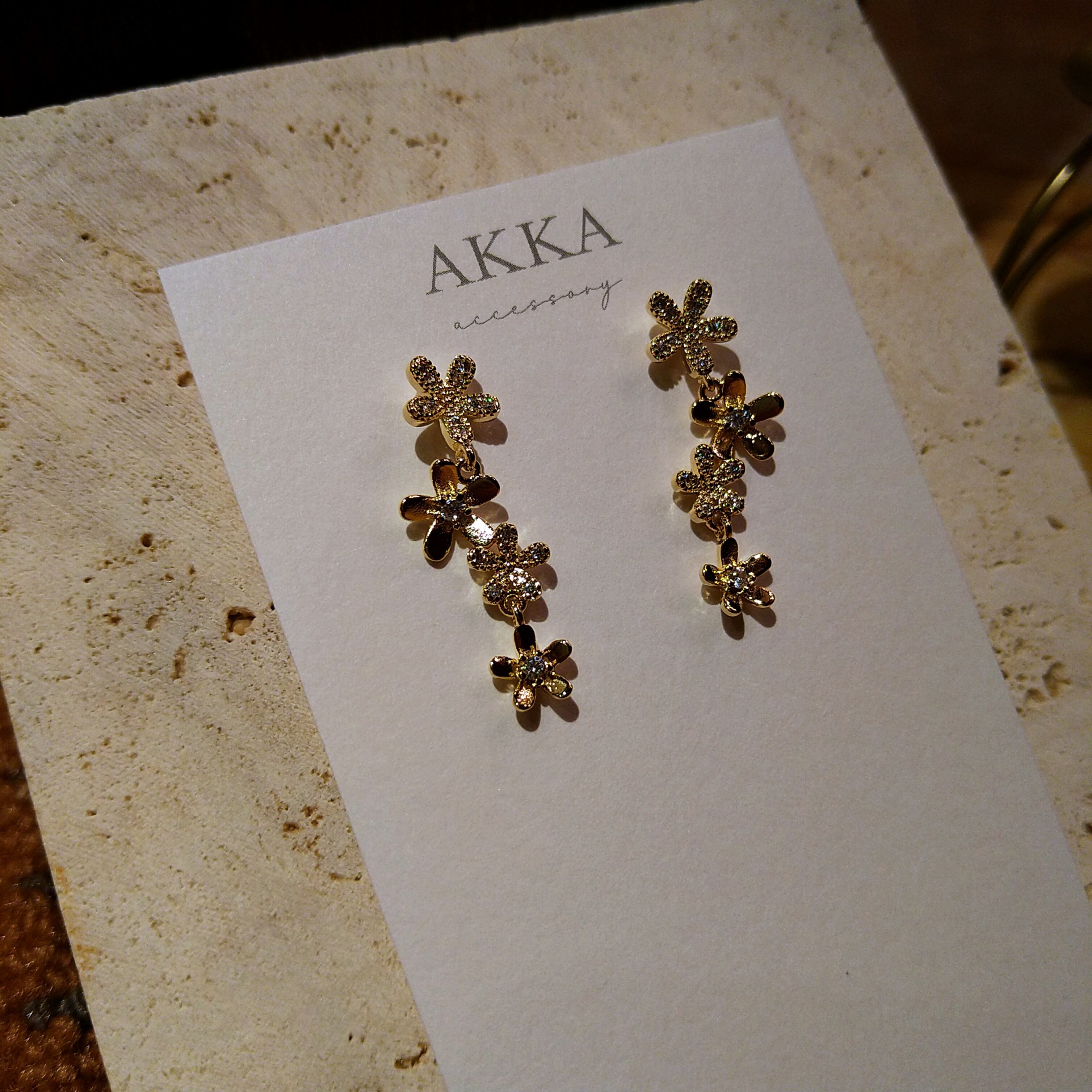 お花モチーフ一個目と2個目の間と、3個目と4個目の間がカンで繋がれておりゆらゆらと揺れるようになっています。