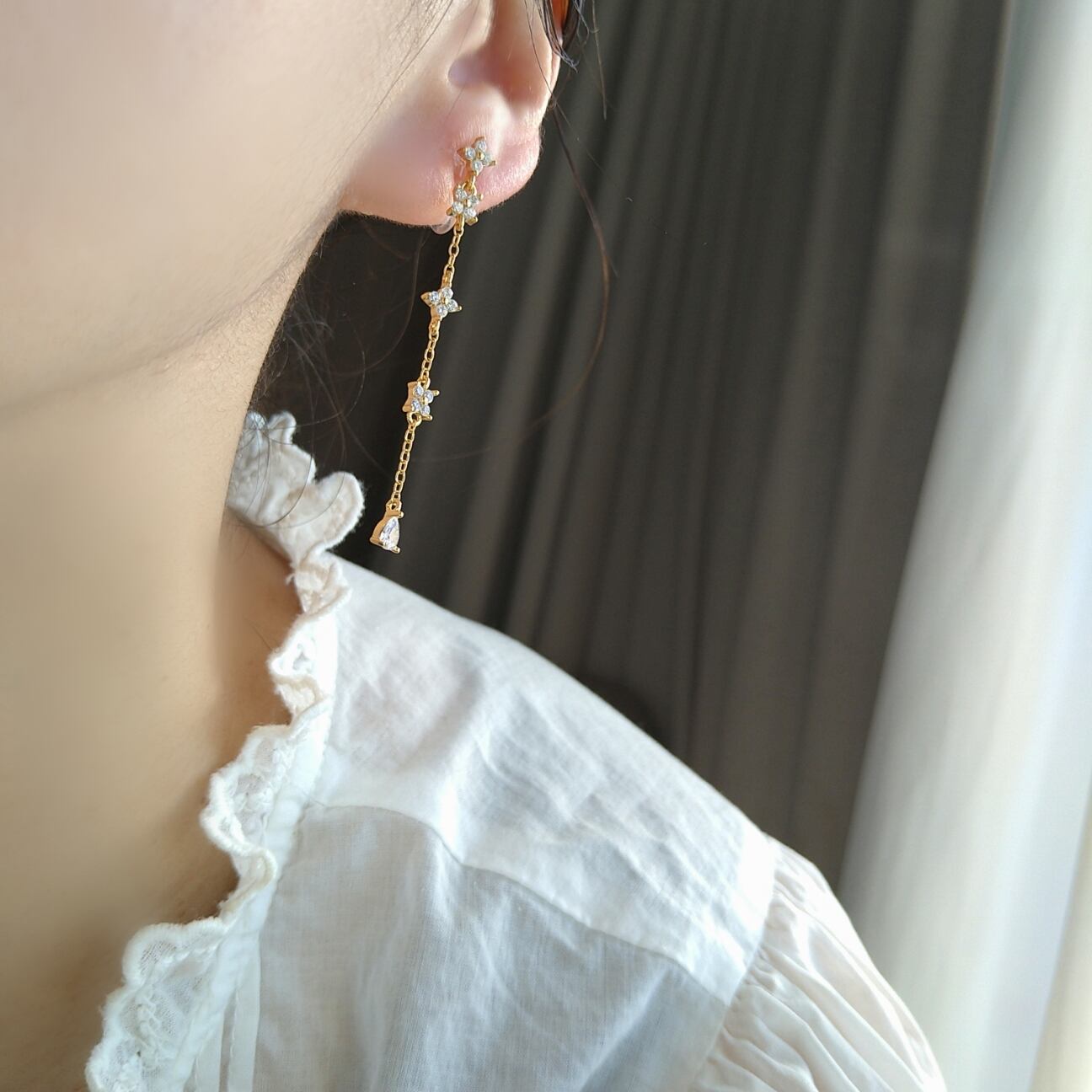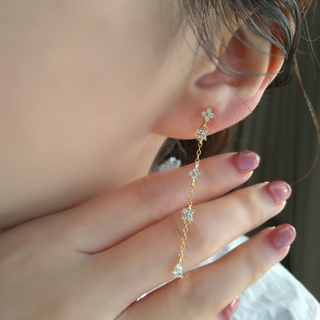 18kgp◆Flower chain otona earrings フラワーチェーン大人イヤリングロングジルコニア大人っぽい