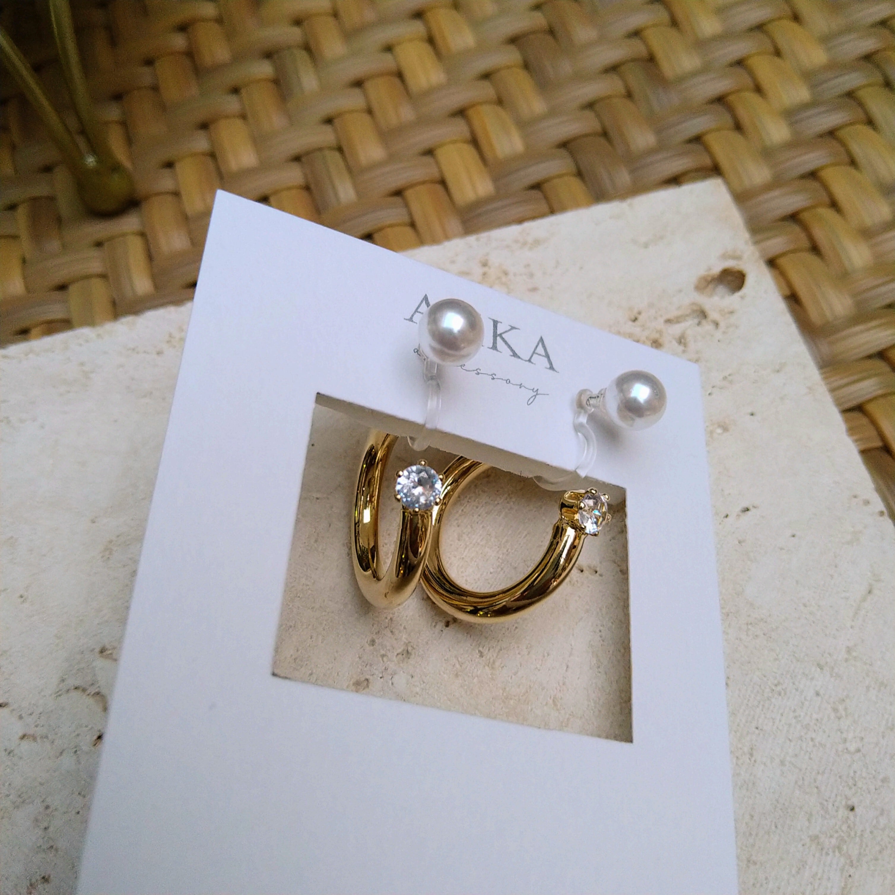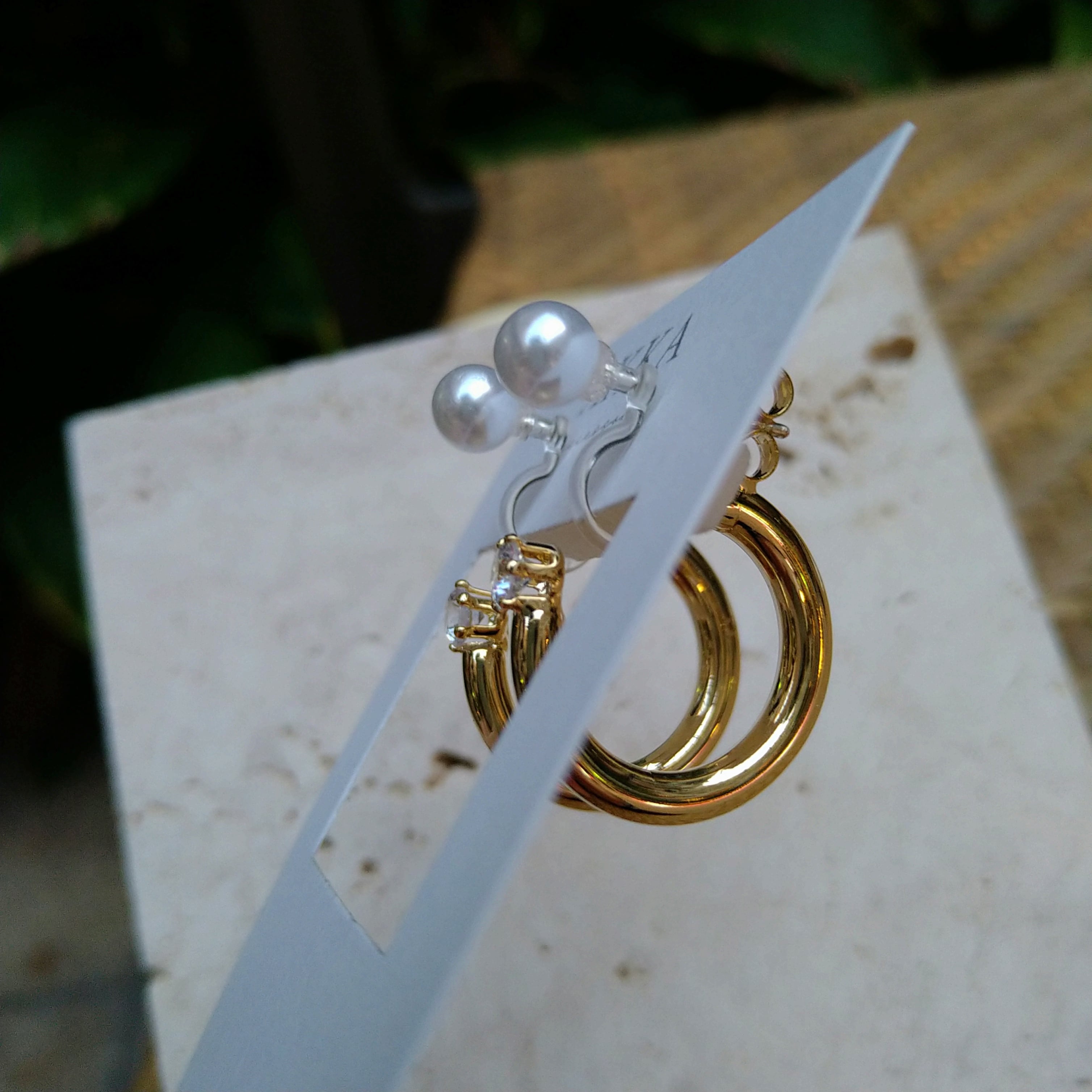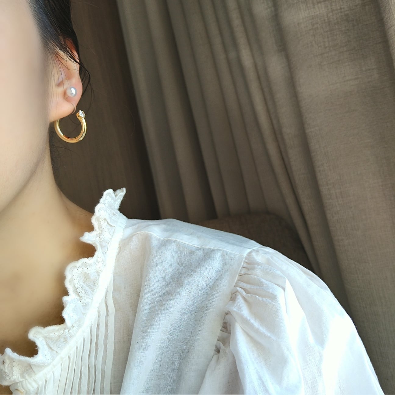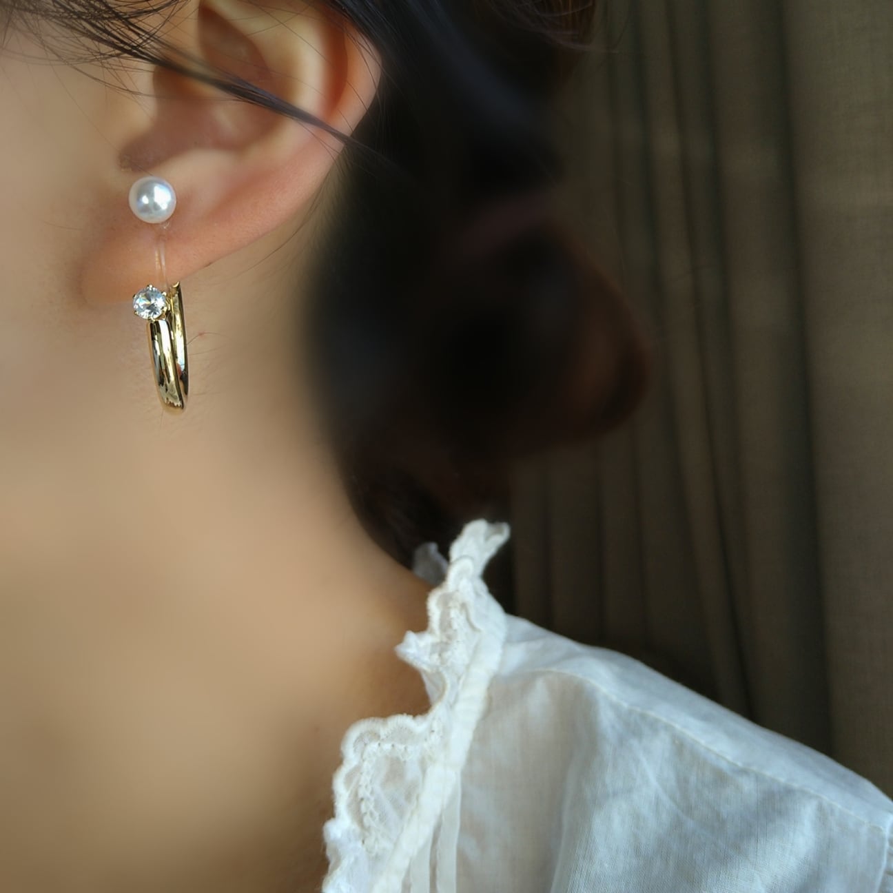 耳の後ろから囲むフープがイヤリングには珍しいデザインで、ピアスのような見た目となっております。