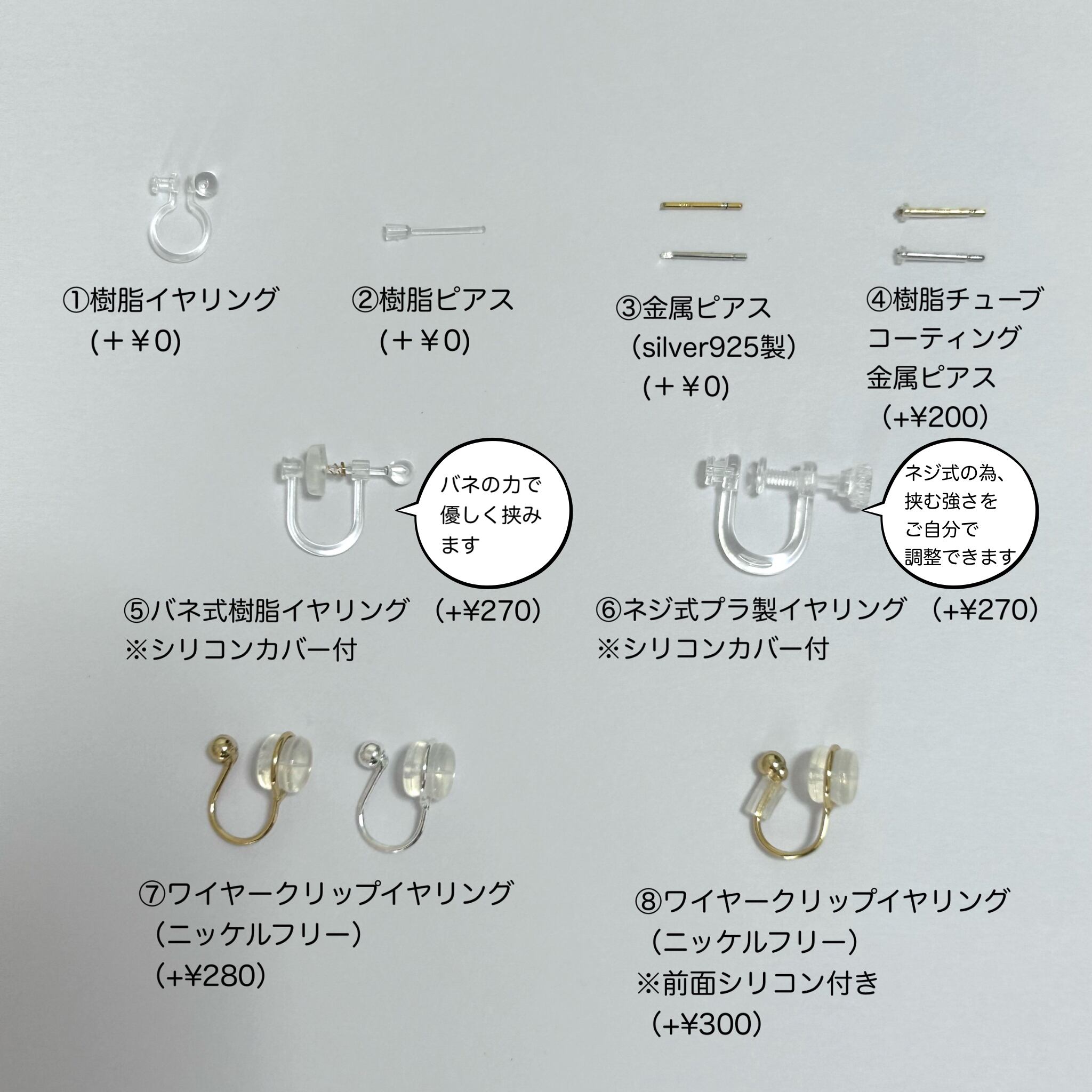 ⑤バネ式樹脂イヤリング ※シリコンカバー付(+¥270)