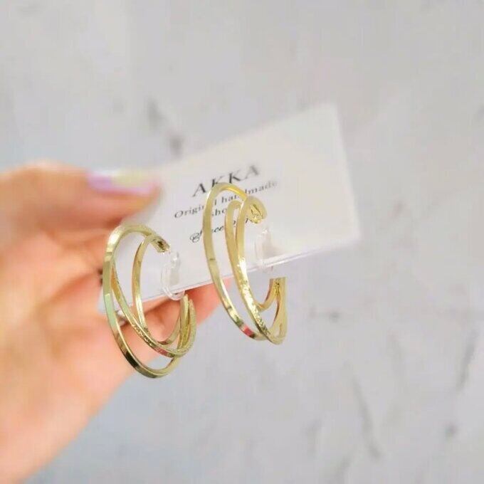 3つのフープが印象的なイヤリングです。 ピアス変更可能です。