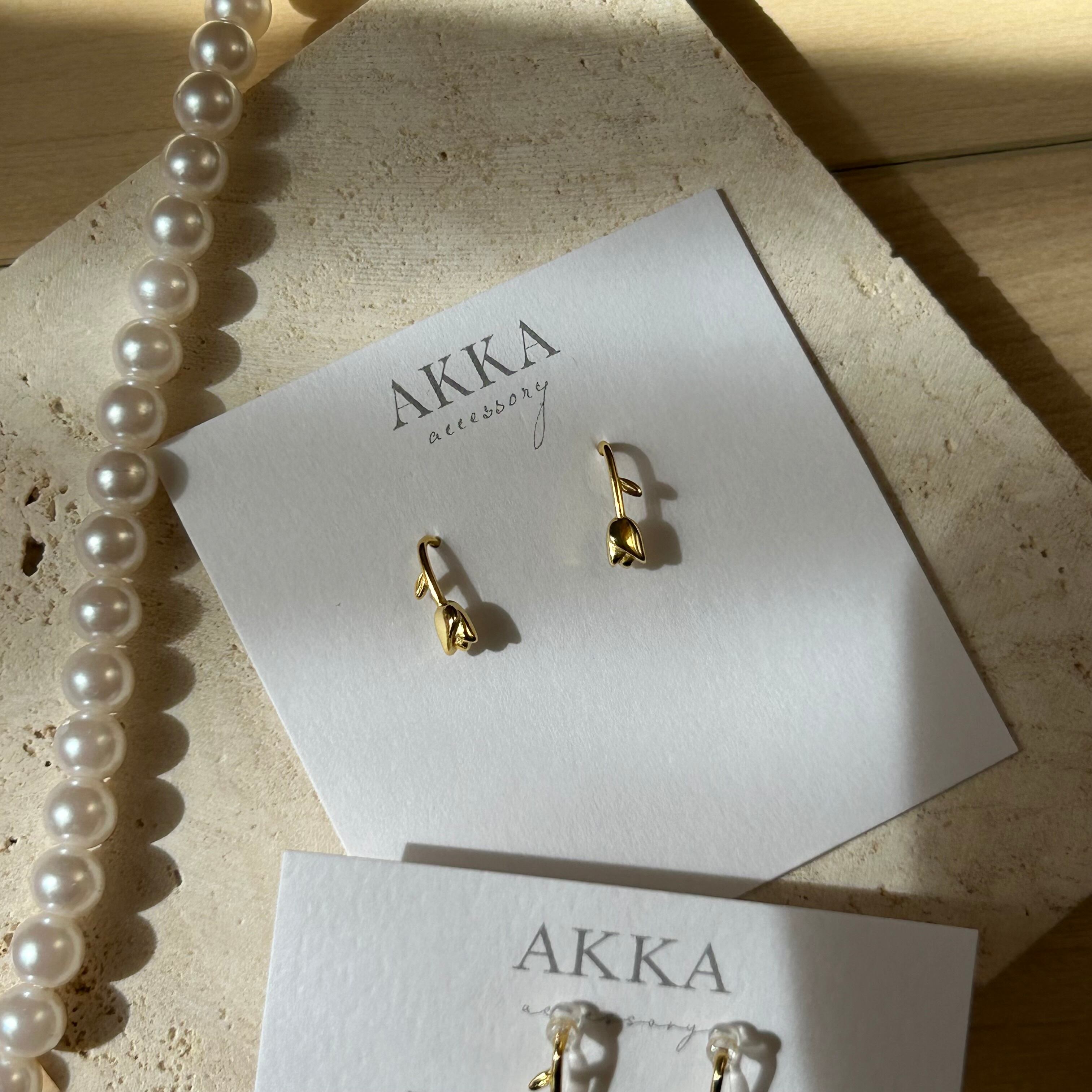 18kgp◆mini flower hookearrings ミニフラワーフック樹脂イヤリング 金属アレルギーノンホールピアス可愛い小さめ個性的シルバー925花ピアスに見える痛くない軽い