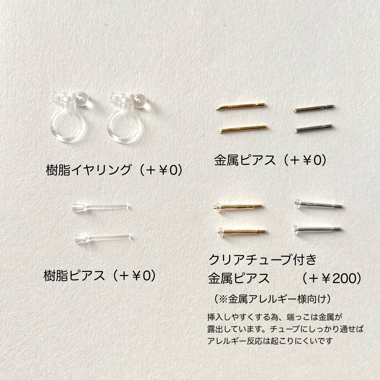 ・金属アレルギー用クリアチューブ付き金属ピアス(+¥200)