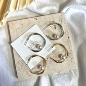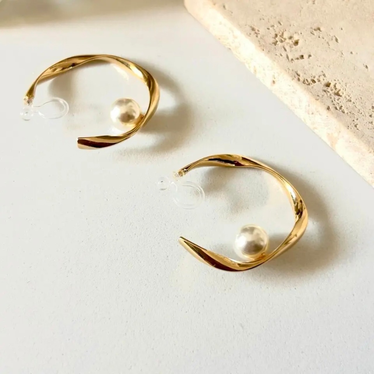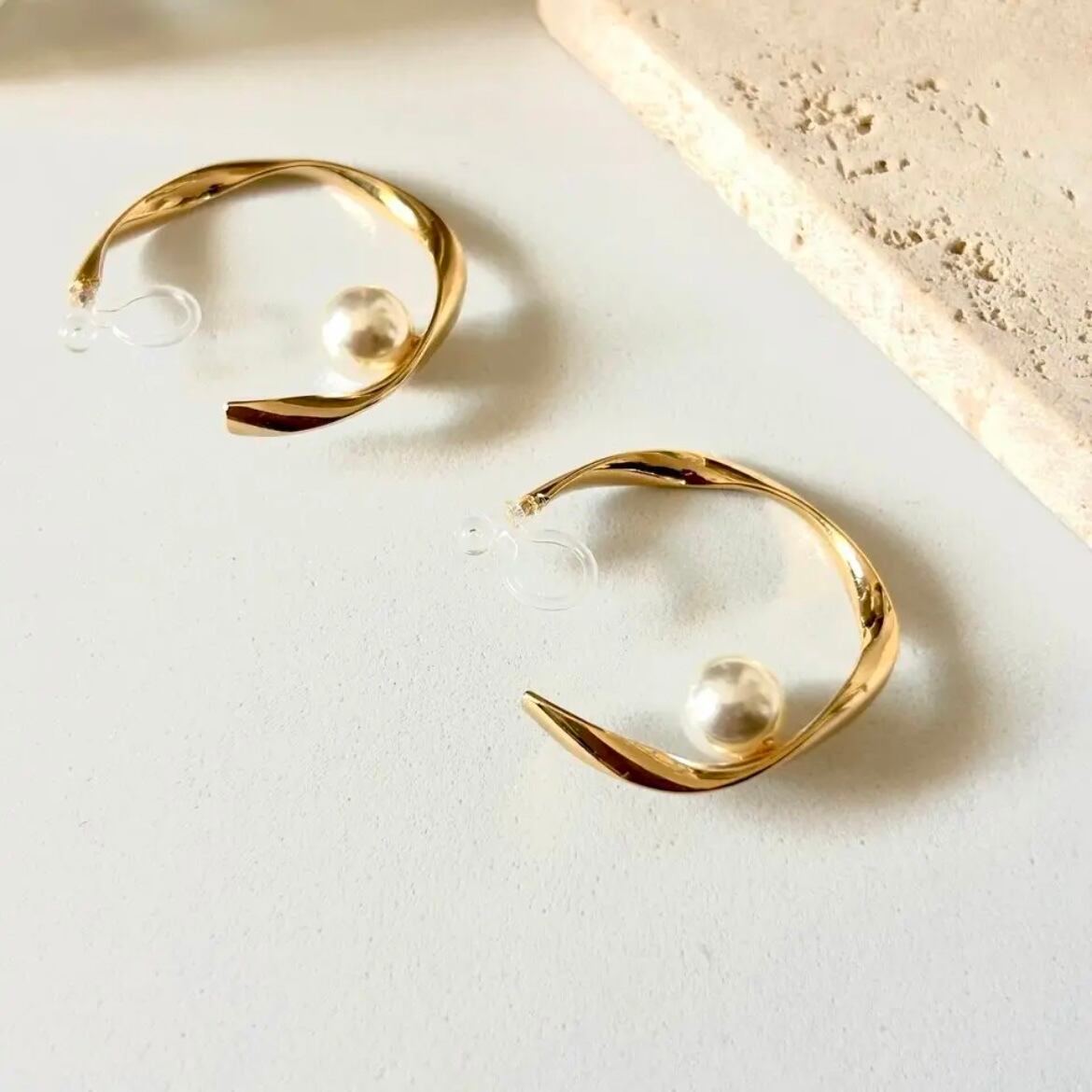 Gold twisthoop&pearl 樹脂イヤリング/樹脂ピアス/金属アレルギー対応/樹脂ノンホール/ノンホールピアスフープイヤリングフープピアス大ぶり大人シンプル
