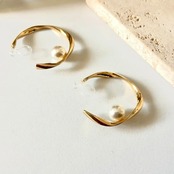 緩やかなツイストフープに、一粒のパールを添えて上品な印象に仕上げた樹脂フープイヤリングです。ピアス変更可能。