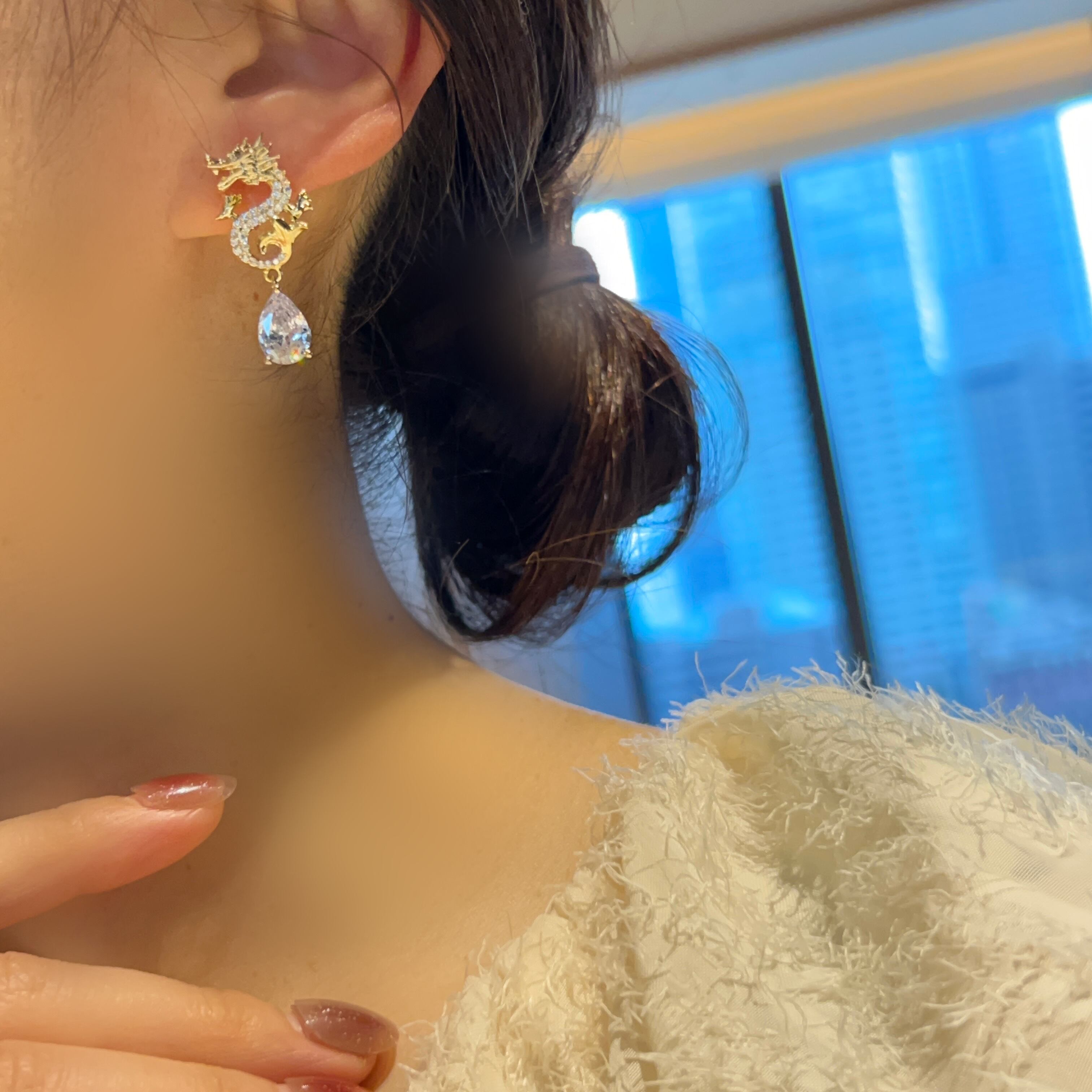 Dragon&bijou asymmetryearring ドラゴンとビジューのアシンメトリーイヤリング 樹脂イヤリング 樹脂ピアス 大ぶり 痛くない 金属アレルギー イヤリング ピアス 龍
