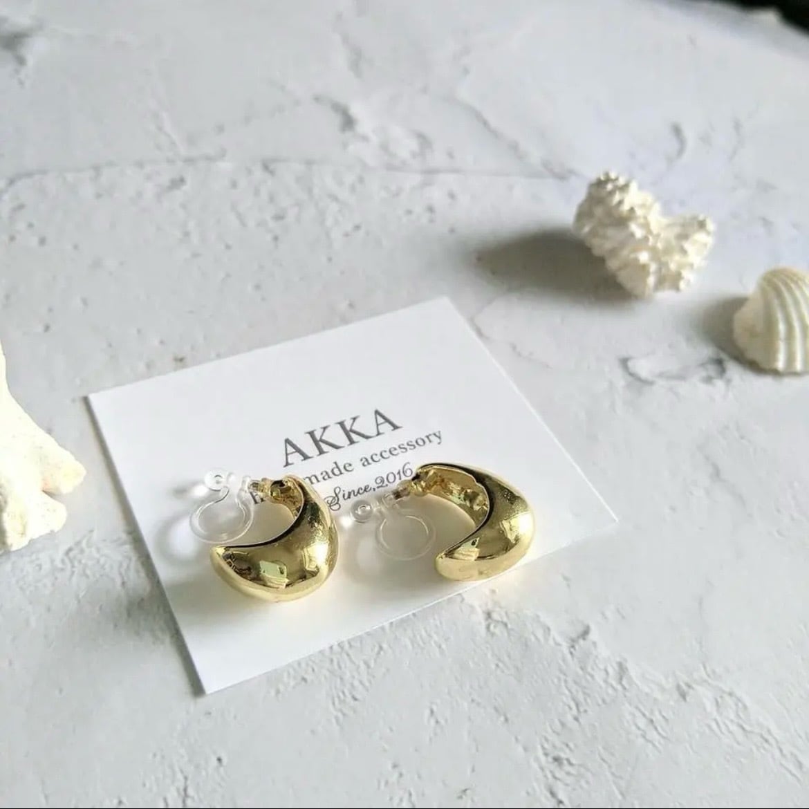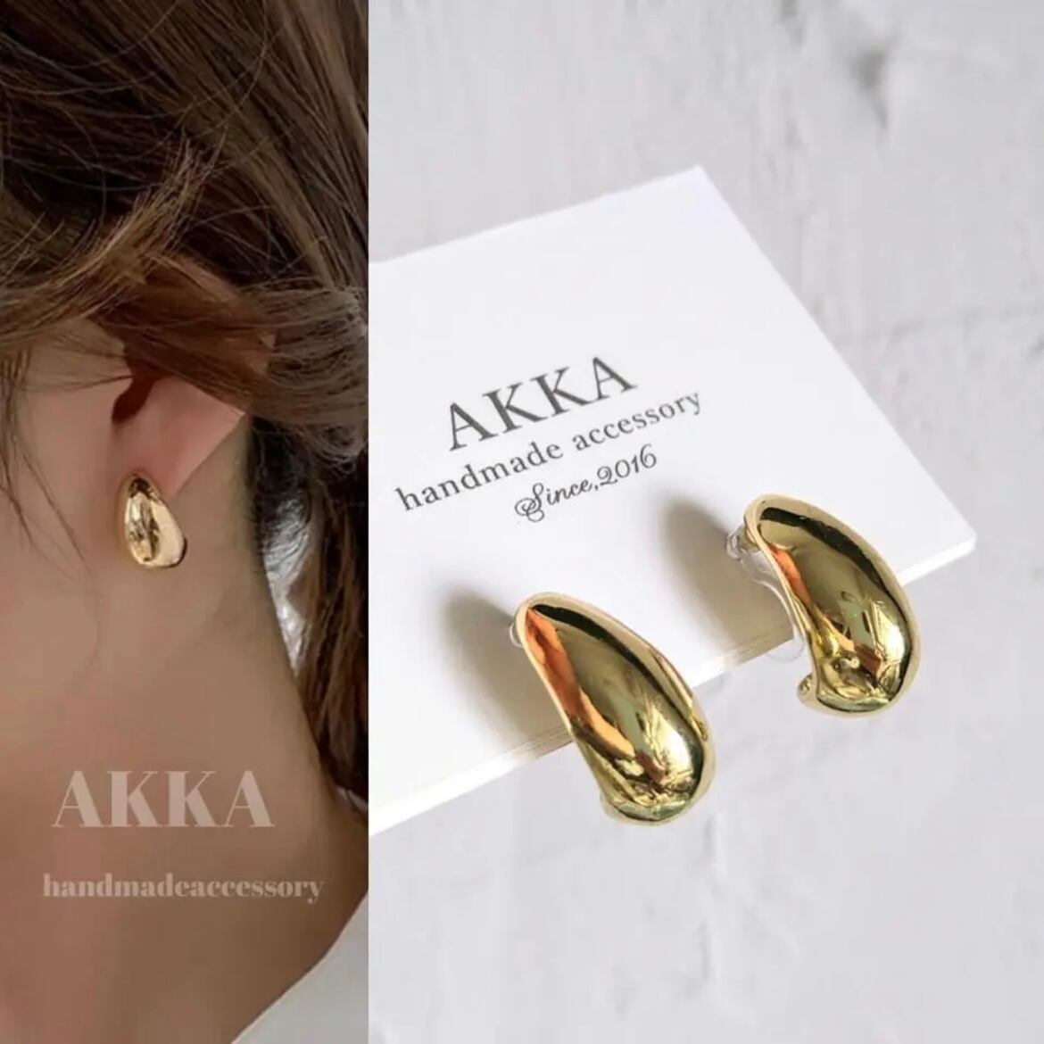 Gold drop earrings ゴールドドロップの樹脂フープイヤリング 樹脂ピアス 韓国 金属アレルギー ノンホールピアス大ぶり一粒大人