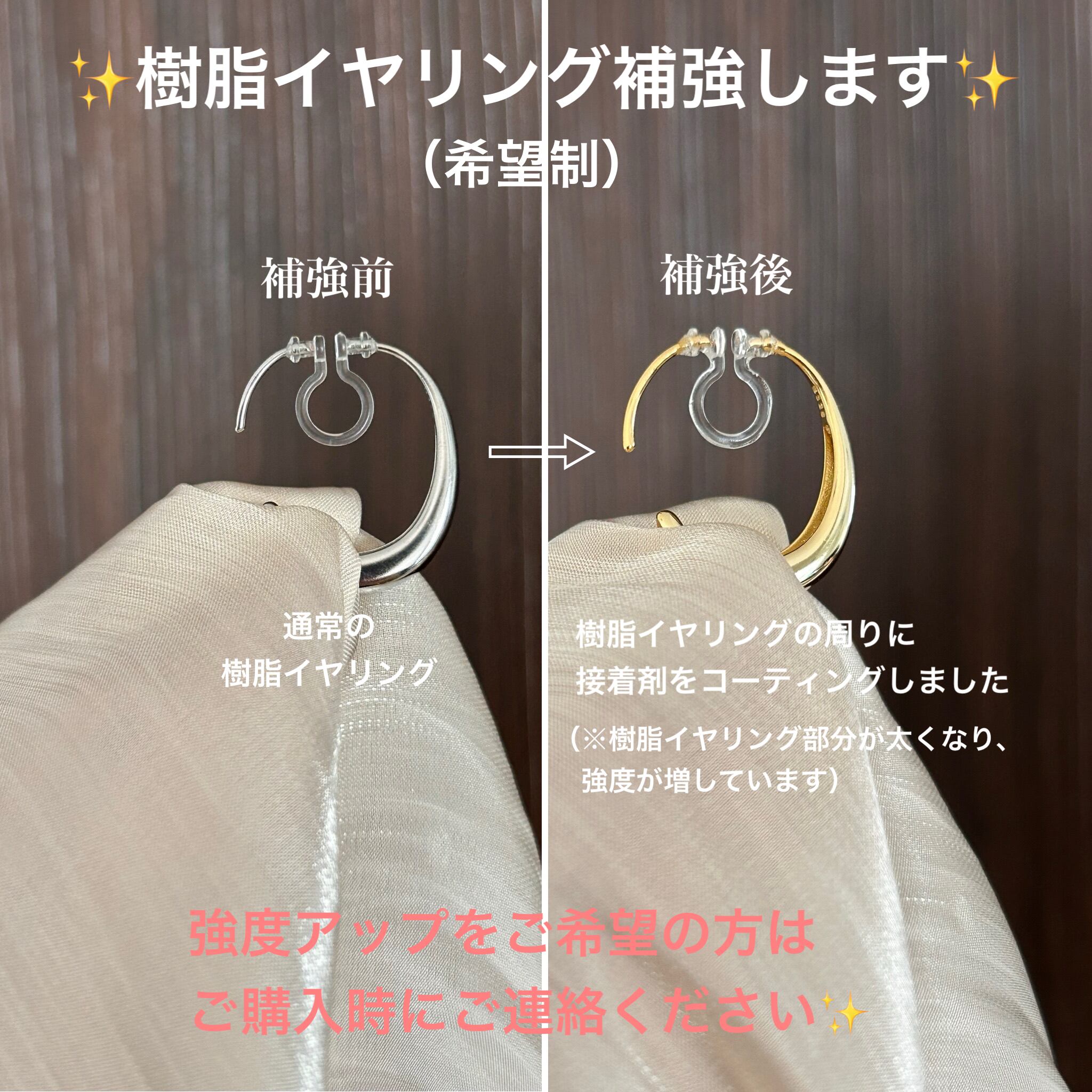 イヤリング金具は樹脂製なので金属アレルギーの方にもお使いいただけます。